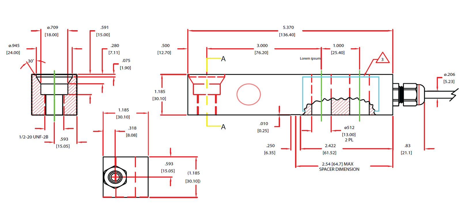 Optional Threaded Foot: HIHARF8 threads 1/2-20 UNF – 2B