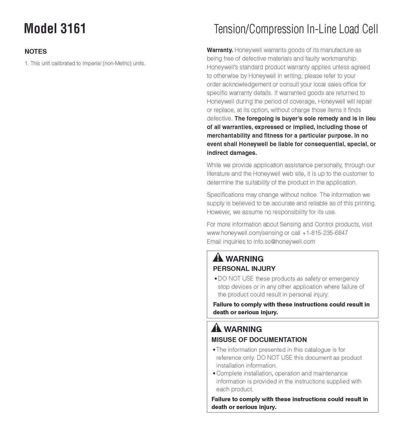 Honeywell Model 3161 Tension/Compression In-Line Load Cell