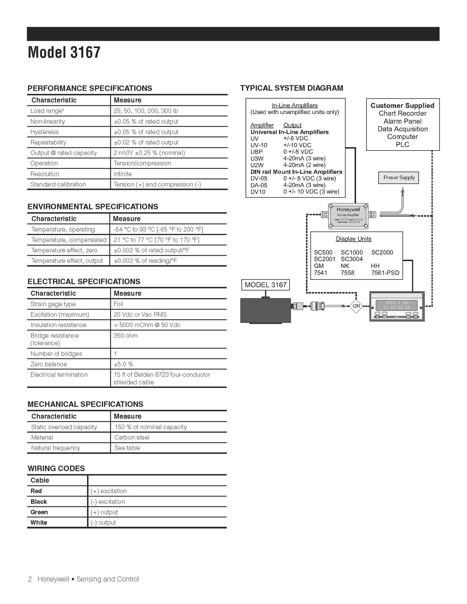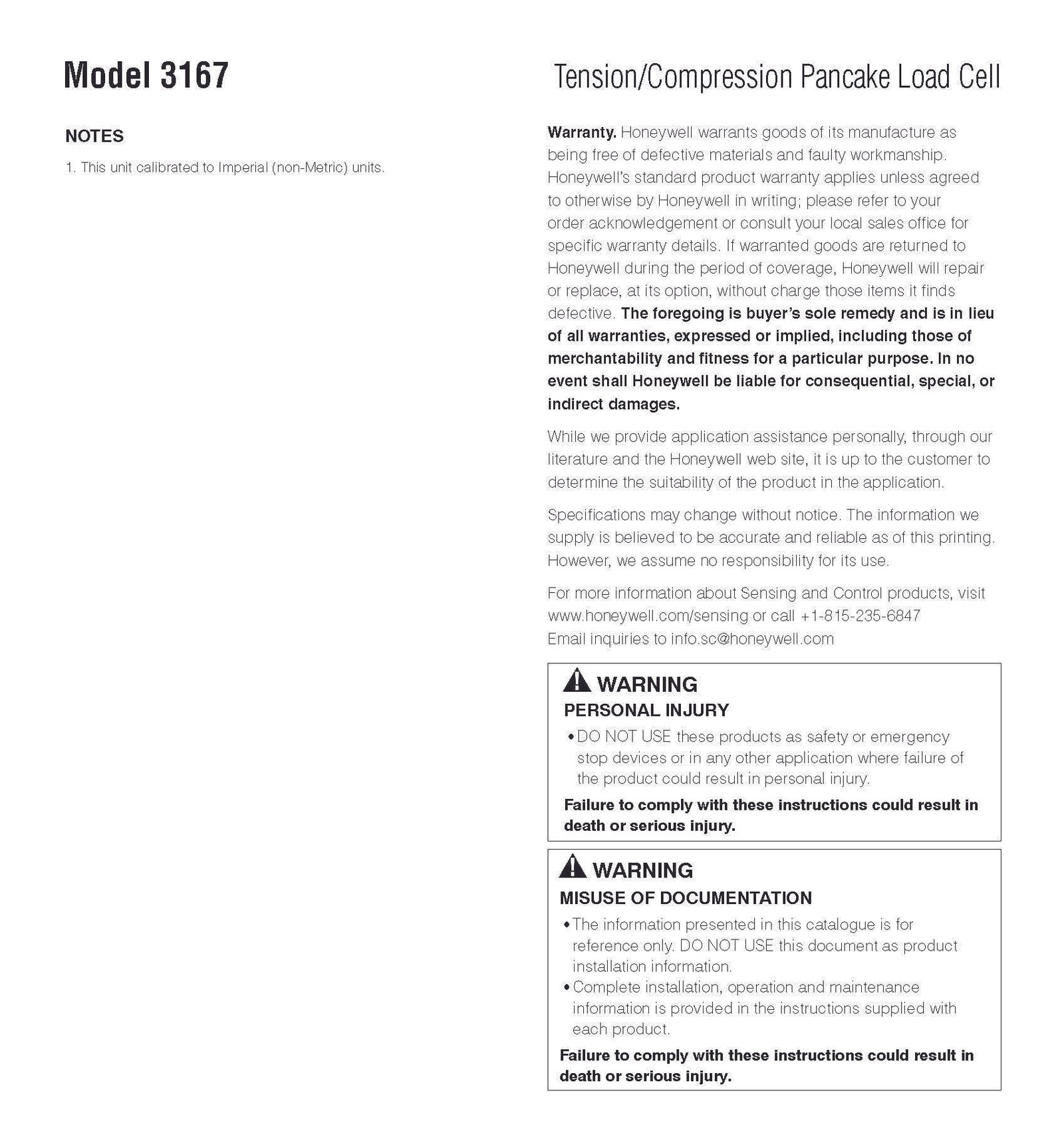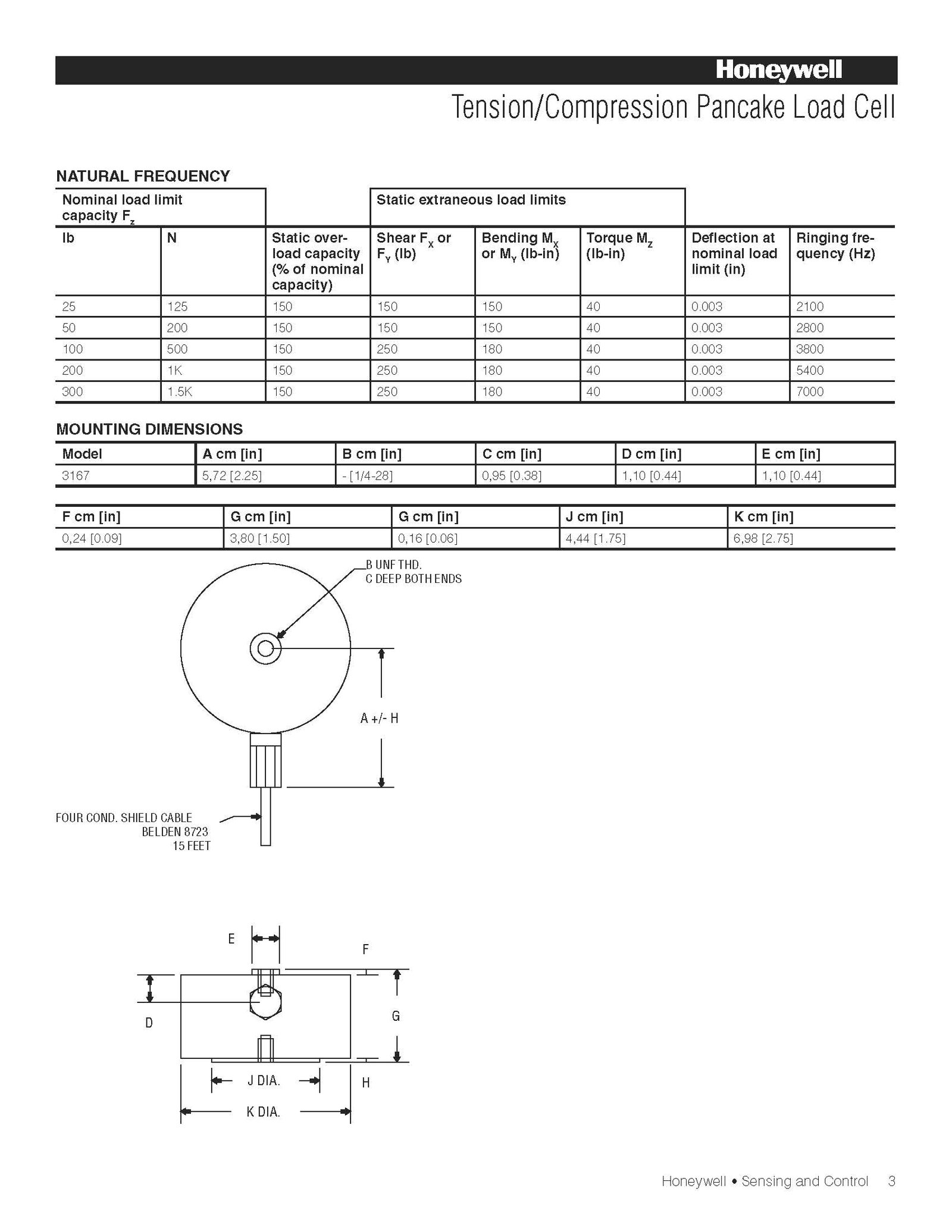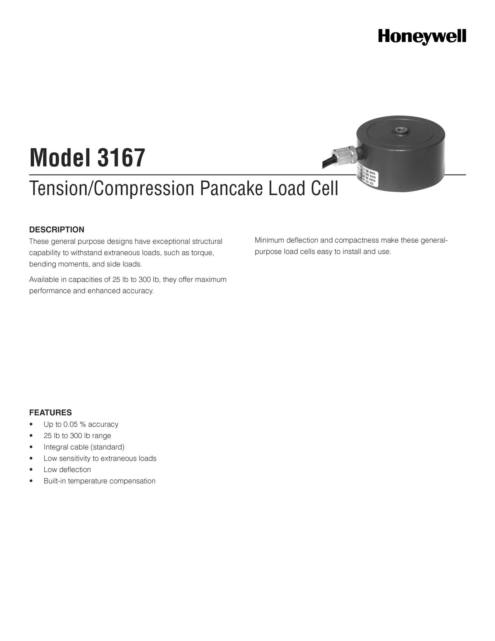 Honeywell Model 3167 Tension/Compression Pancake Load Cell