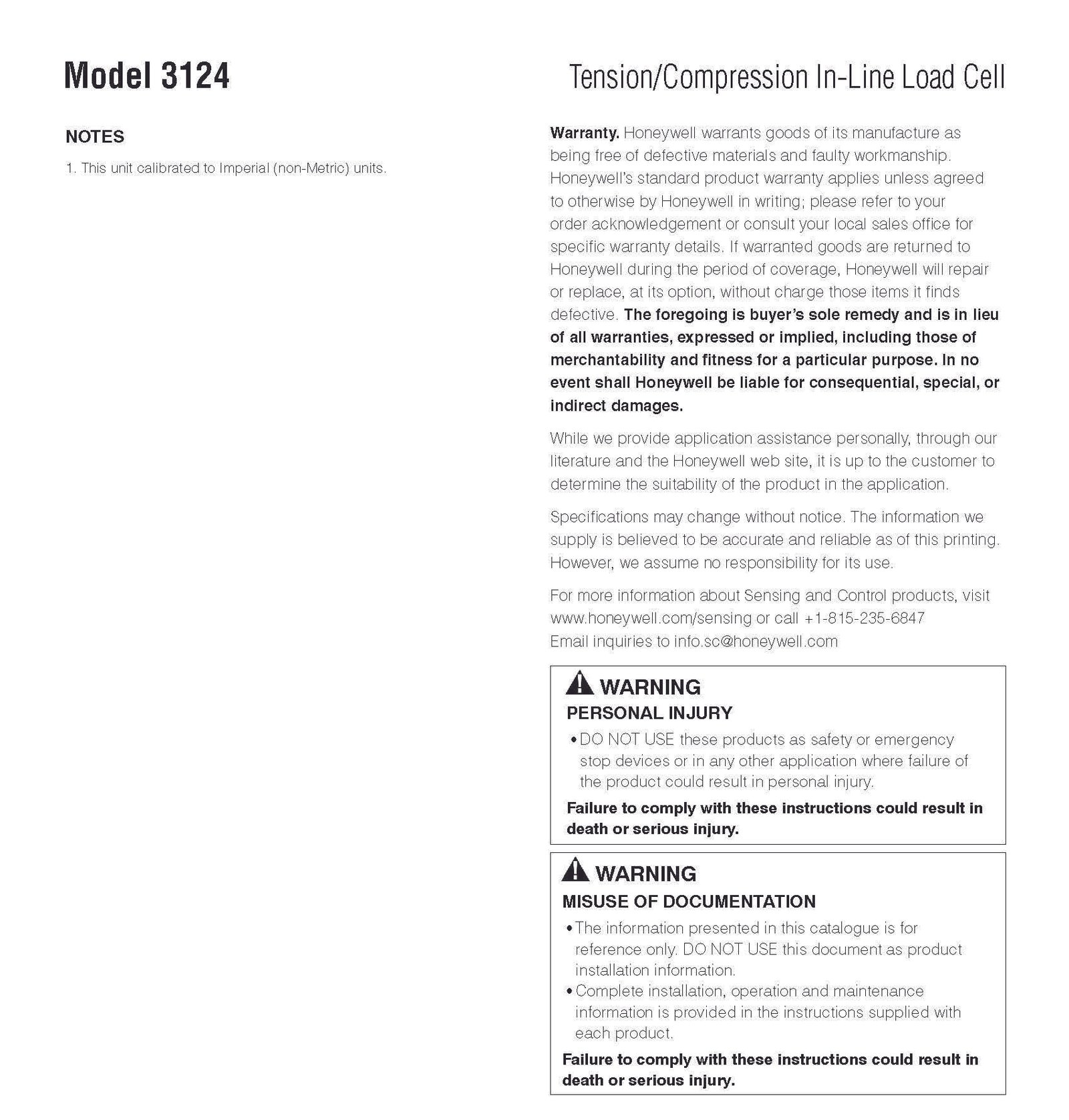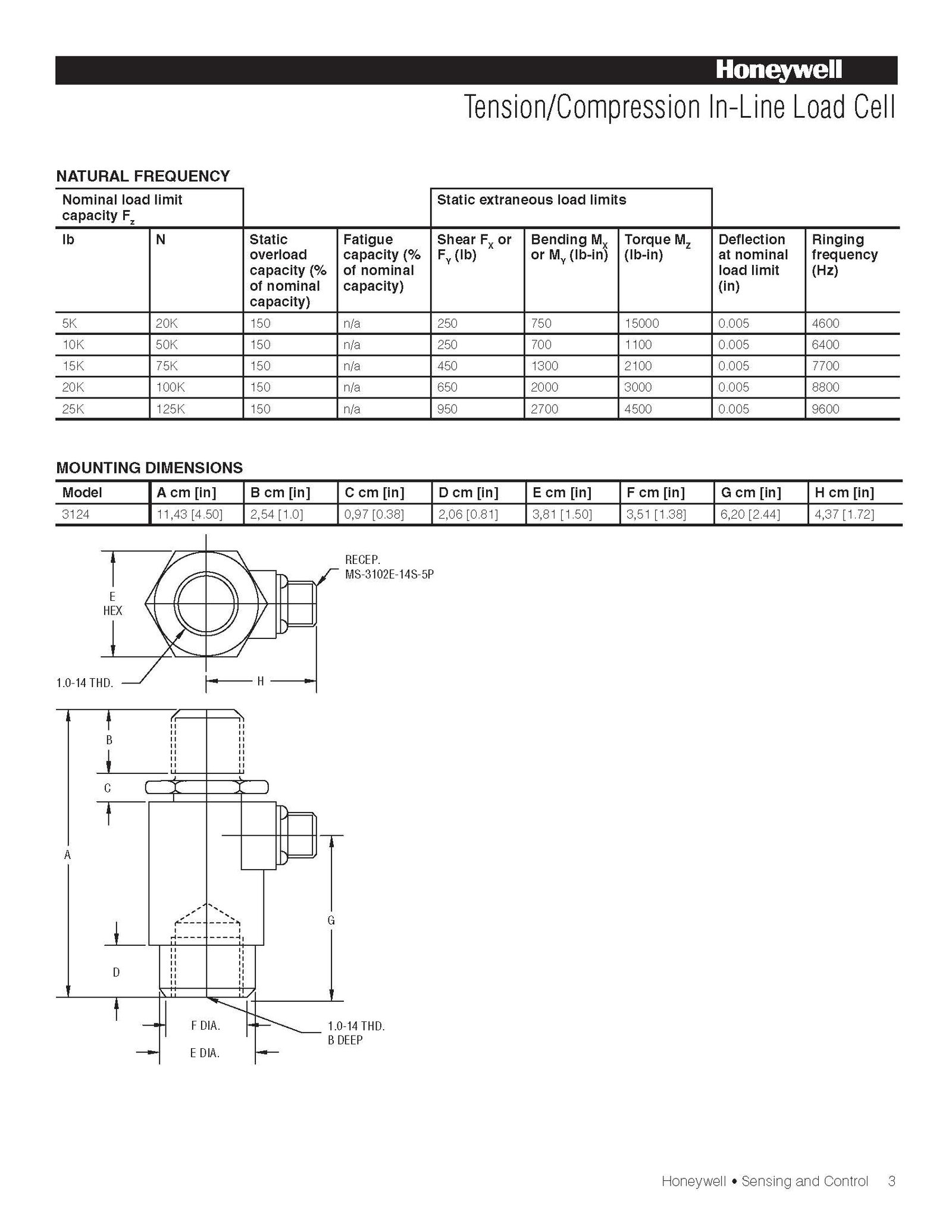 Honeywell Model 3632 Tension/Compression In-Line Load Cell