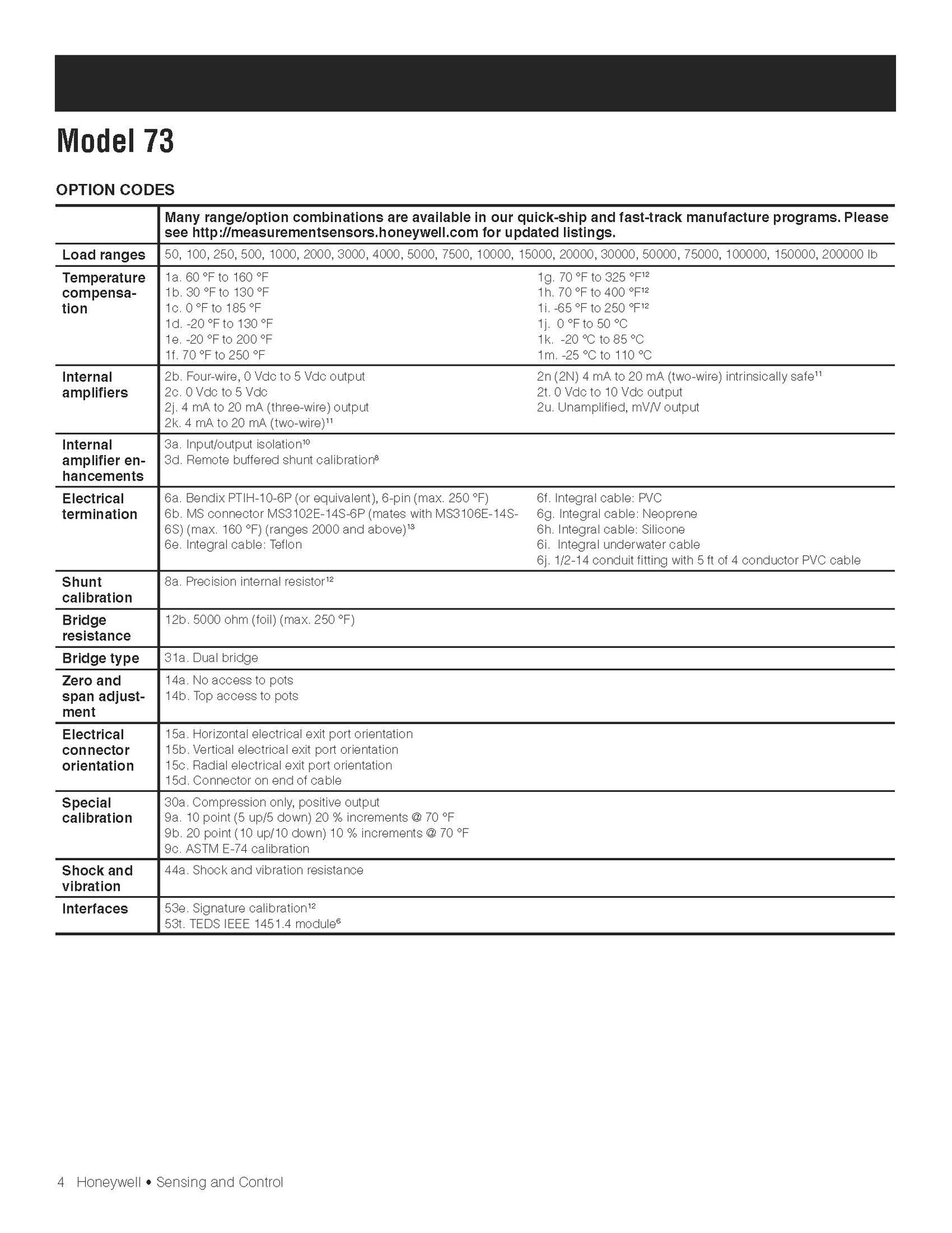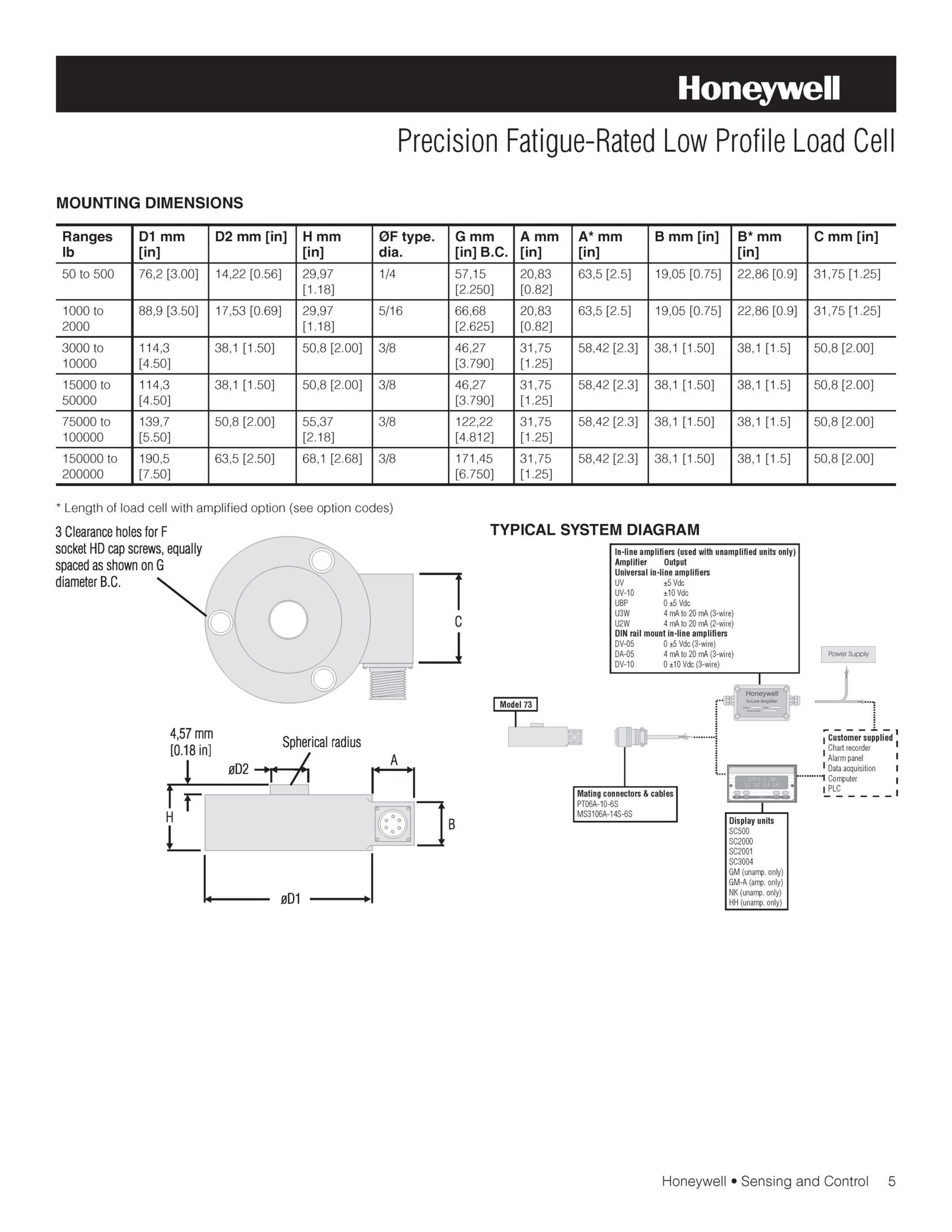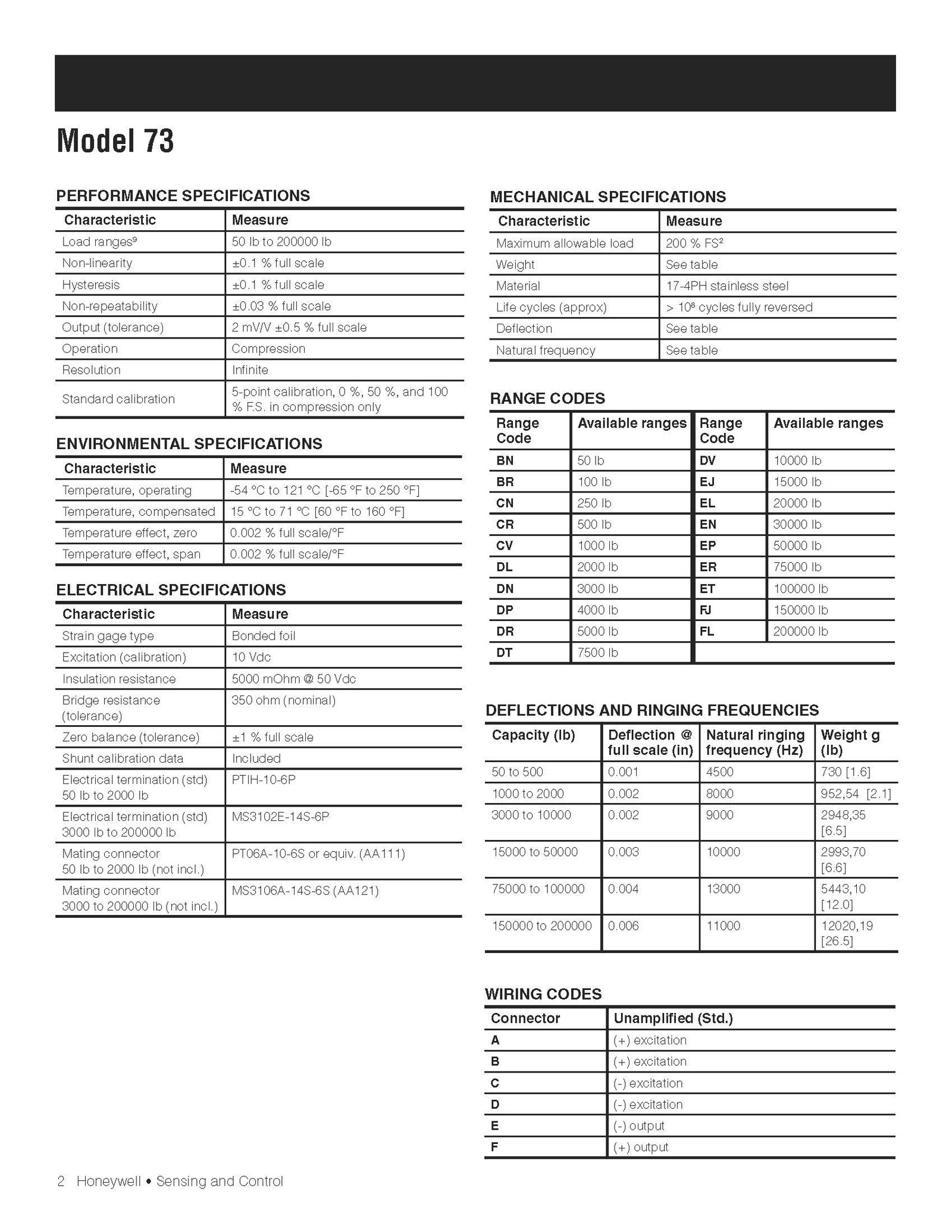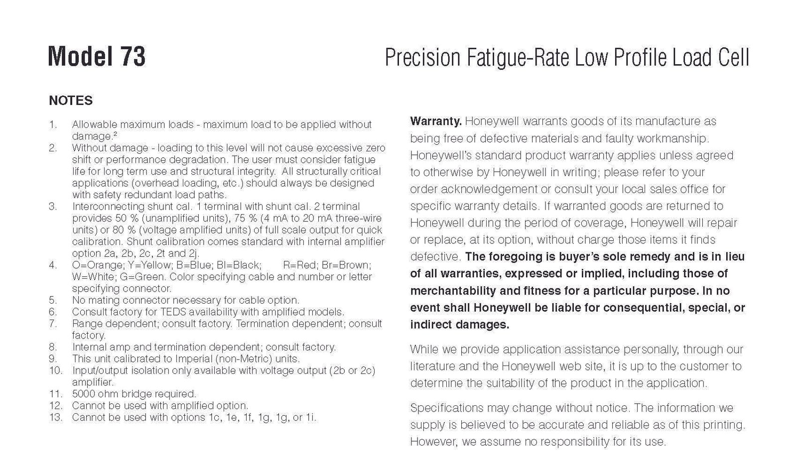 Honeywell Model 73 Precision Fatigue-Rated Low Profile Load Cell