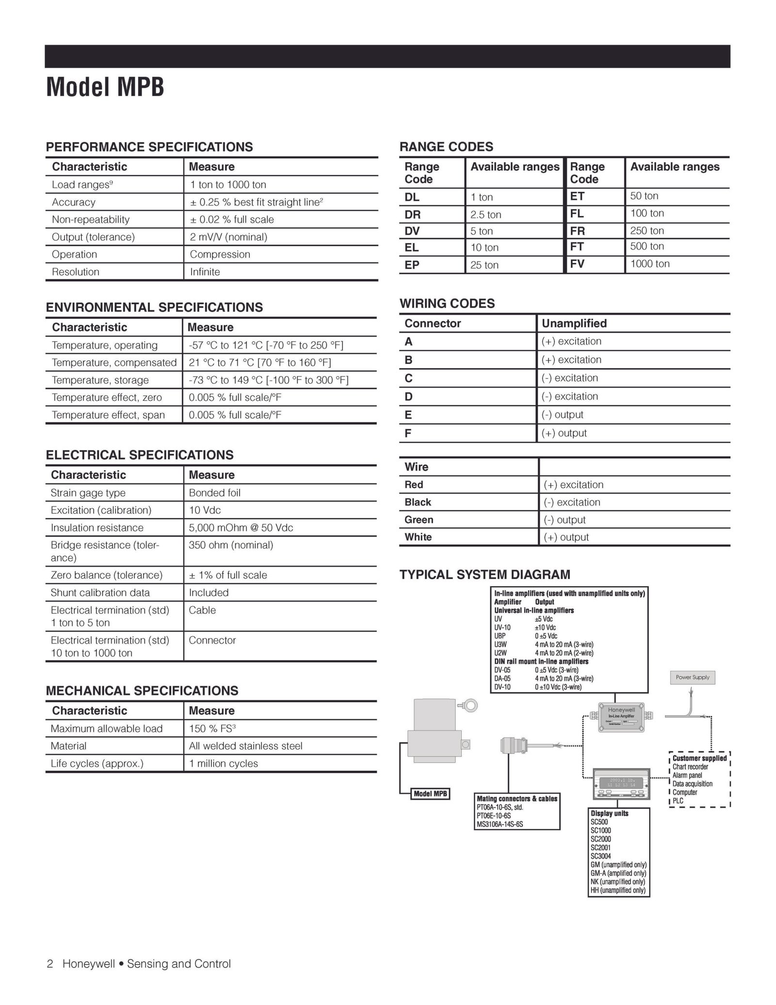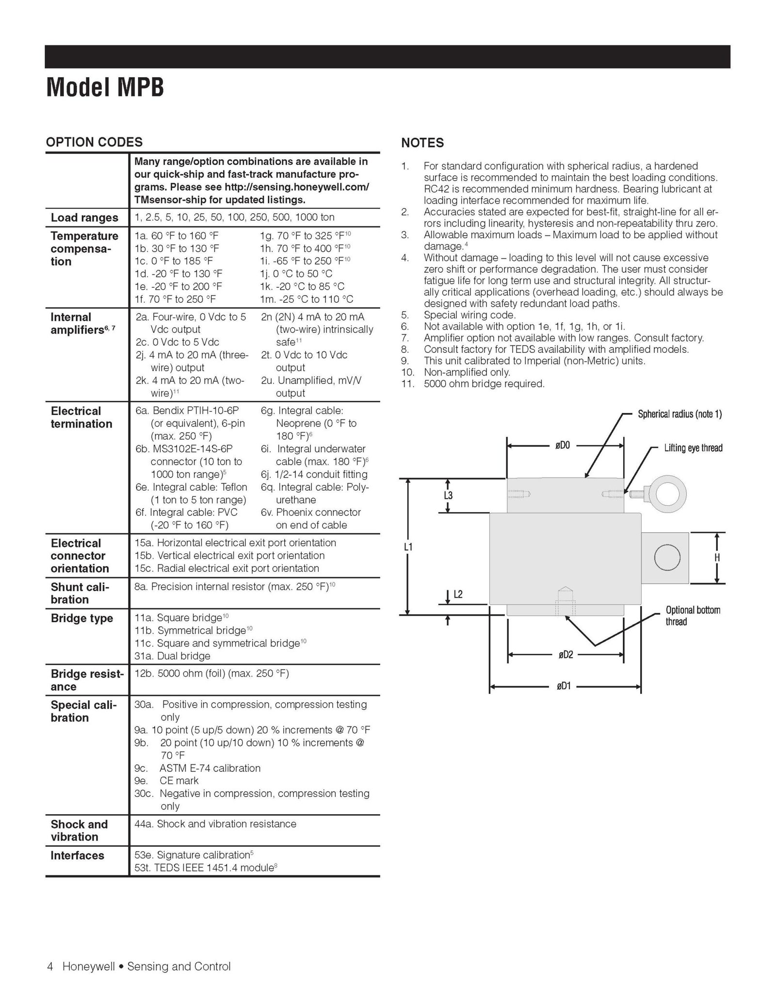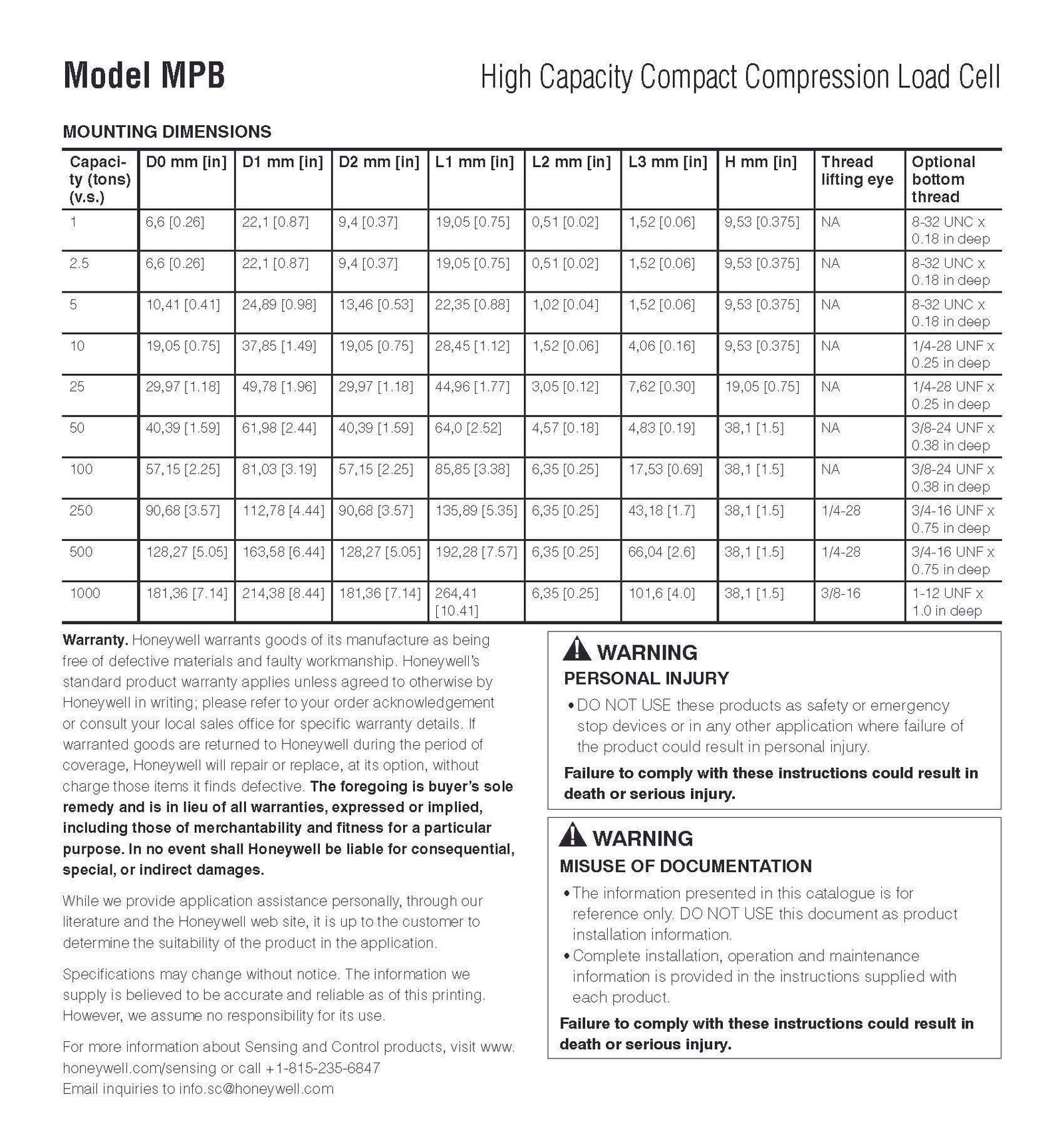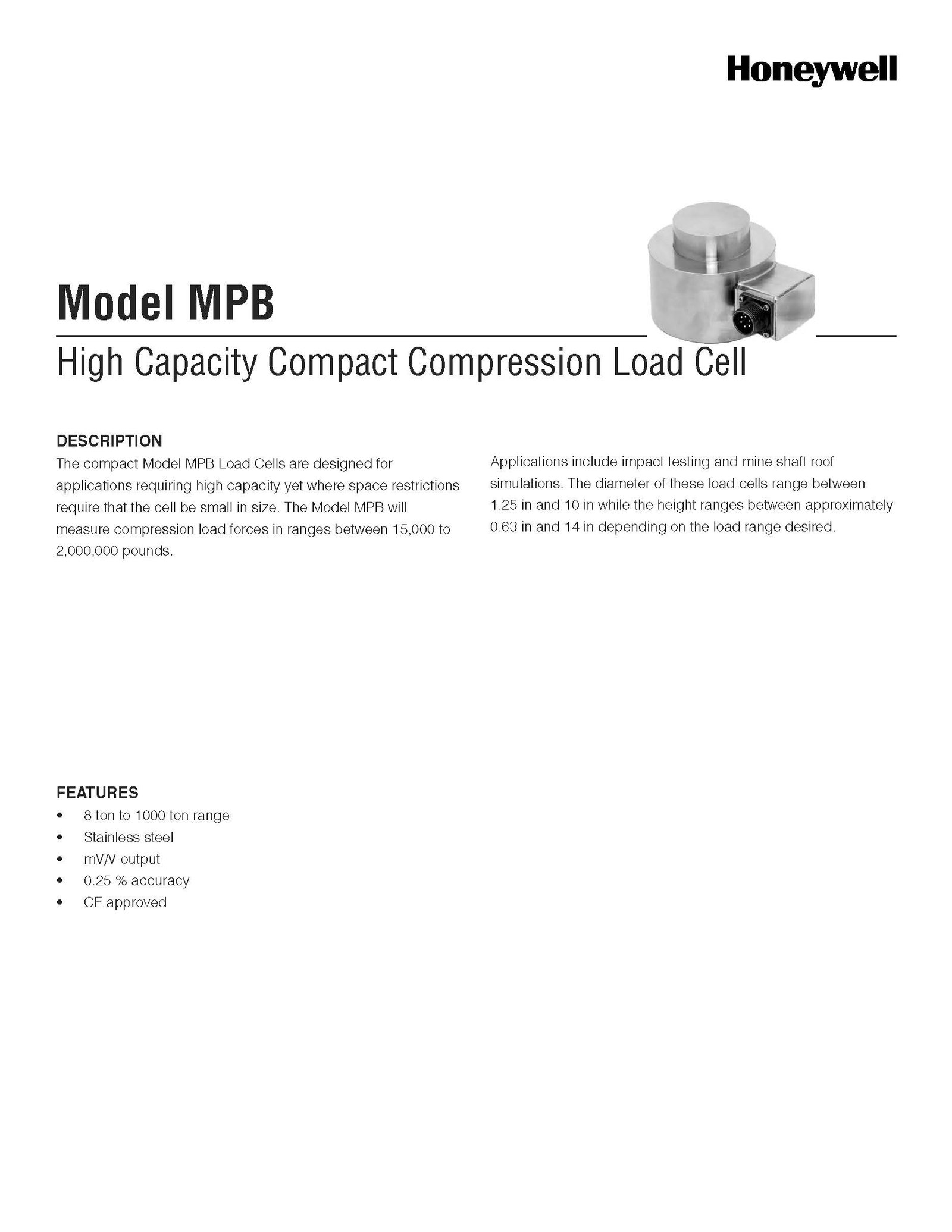Honeywell Model MPB High Capacity Compact Compression Load Cell
