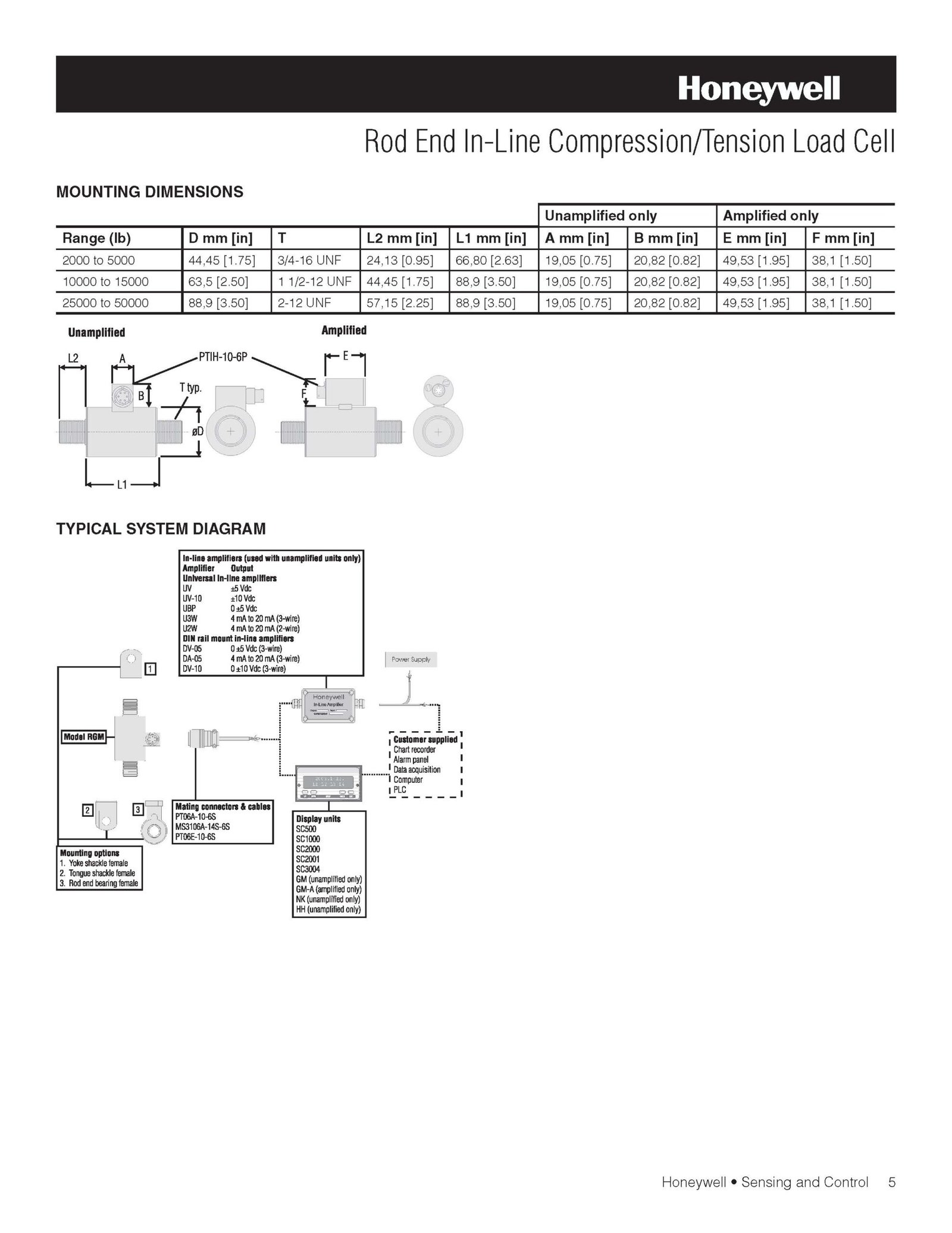 Honeywell / Model RGM / Rod End In-line Tension/Compression Load Cell