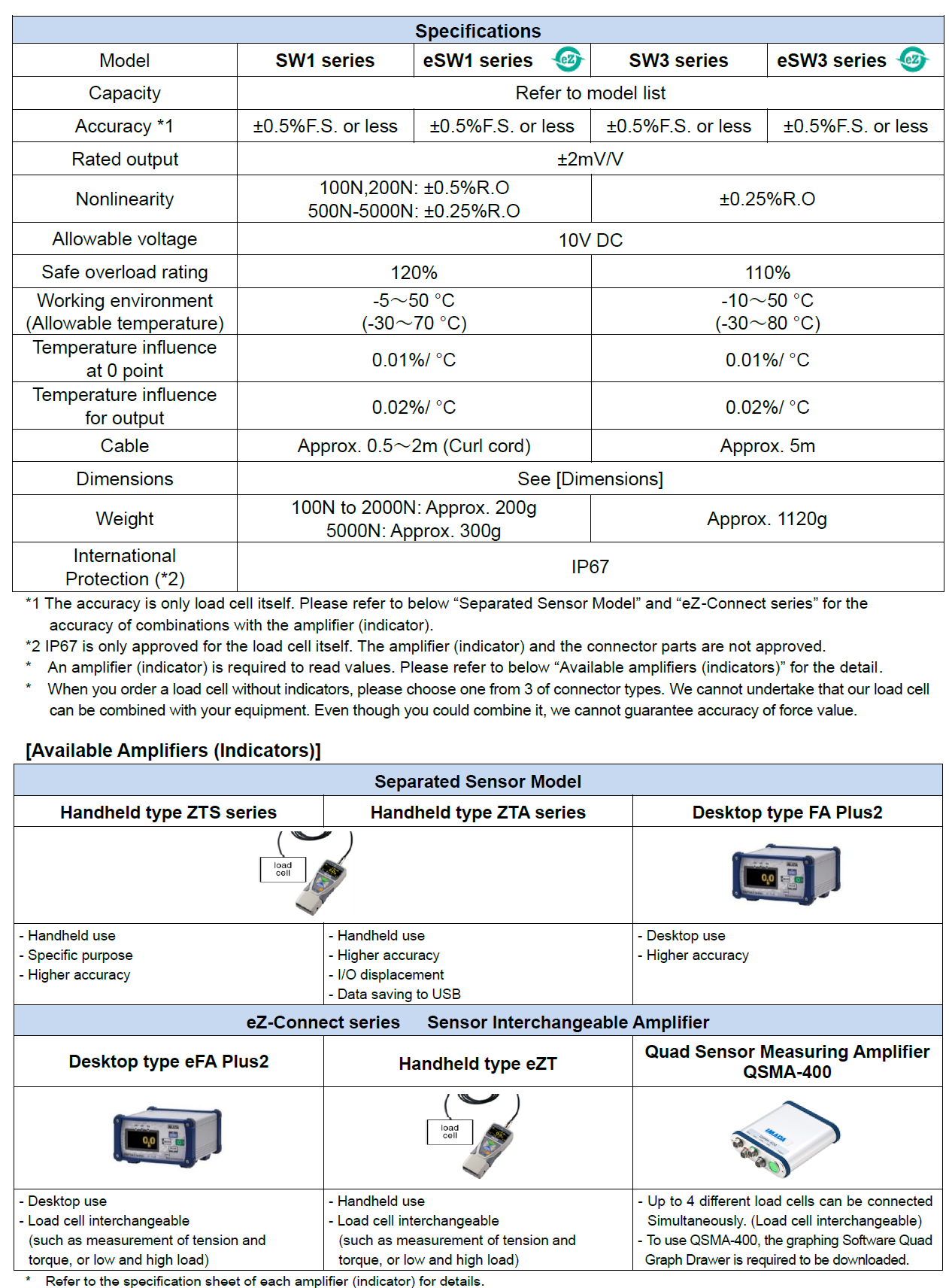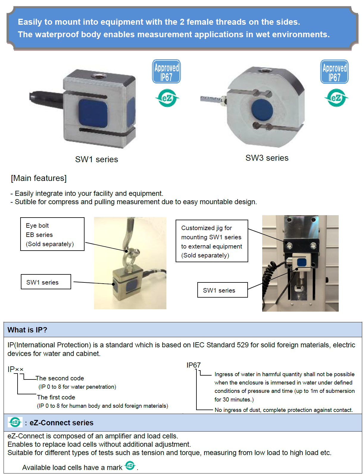 - eZ-Connect series (interchangeable sensors for using with one amplifier eZT) available for a wide range of testing