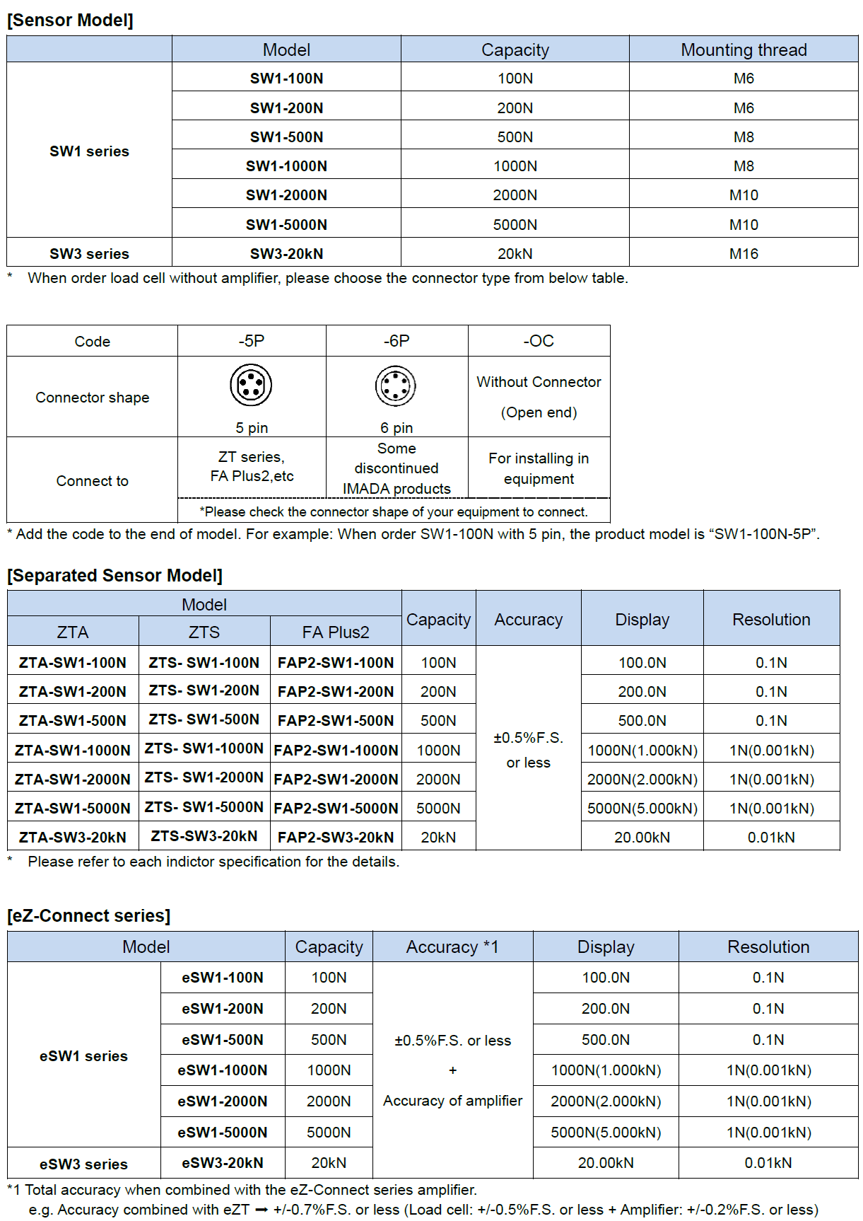 - Separated sensor model force gauges with a dedicated sensor available for a certain measurement purpose