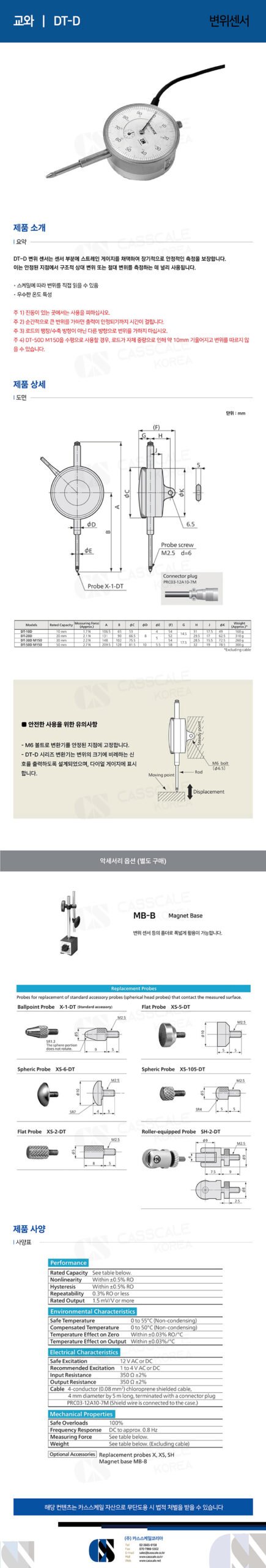 4. When using the DT-50D M150 horizontally, the rod may tilt about 10 mm due to its own weight, which may not follow the displacement accurately.