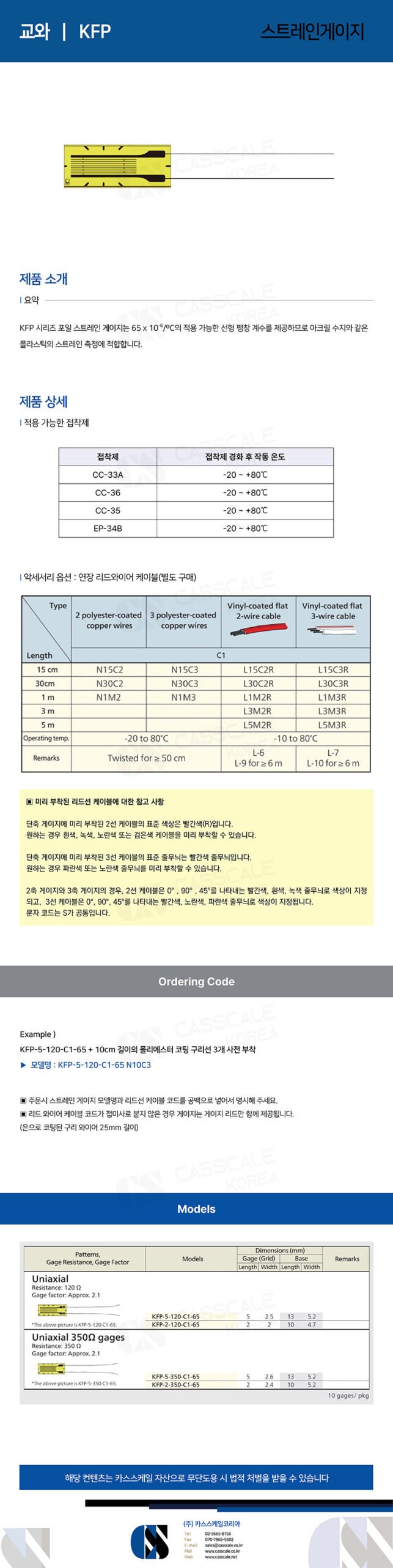 The KFP series foil strain gauges provide a usable linear thermal expansion coefficient of 65 × 10⁻⁶ /°C, making them suitable for strain measurement on plastics such as acrylic resin.