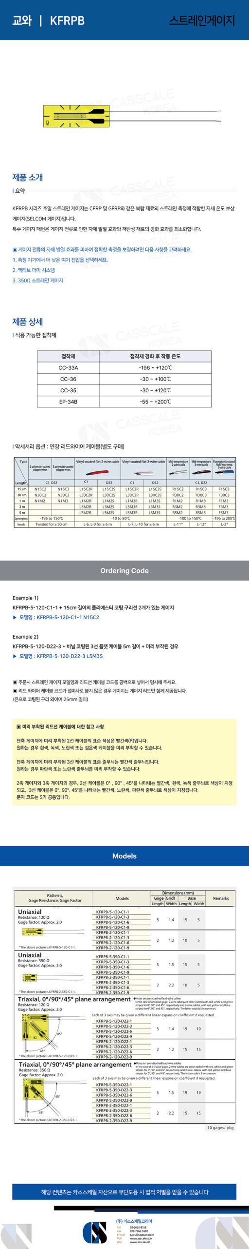 The KFRPB series foil strain gauges are self-temperature-compensated gauges (SELCOM gauges) suitable for measuring strain in composite materials such as CFRP and GFRP. The special gauge pattern minimizes the self-heating effect caused by gauge current and the stiffening effect of low-elasticity materials.