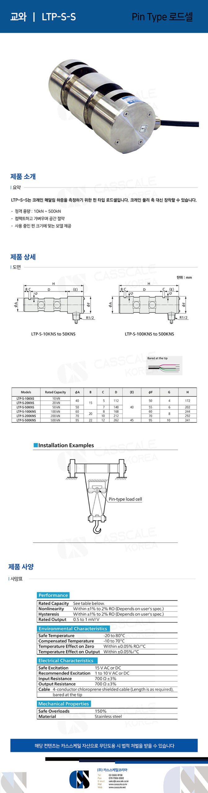 LTP-S-S is a pin-type load cell designed to measure crane suspended loads and can be mounted in place of a crane pulley shaft.