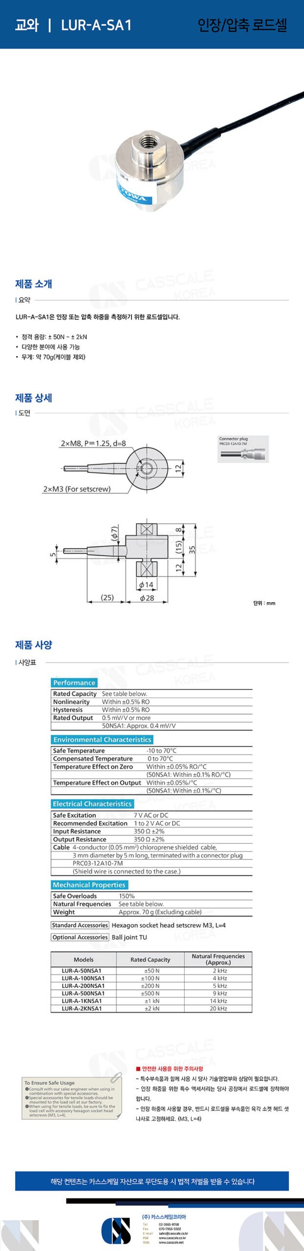 LUR-A-SA1은 인장 및 압축 하중 측정을 위해 설계된 소형 로드셀로, 다양한 산업 및 실험 분야에서 활용할 수 있습니다.