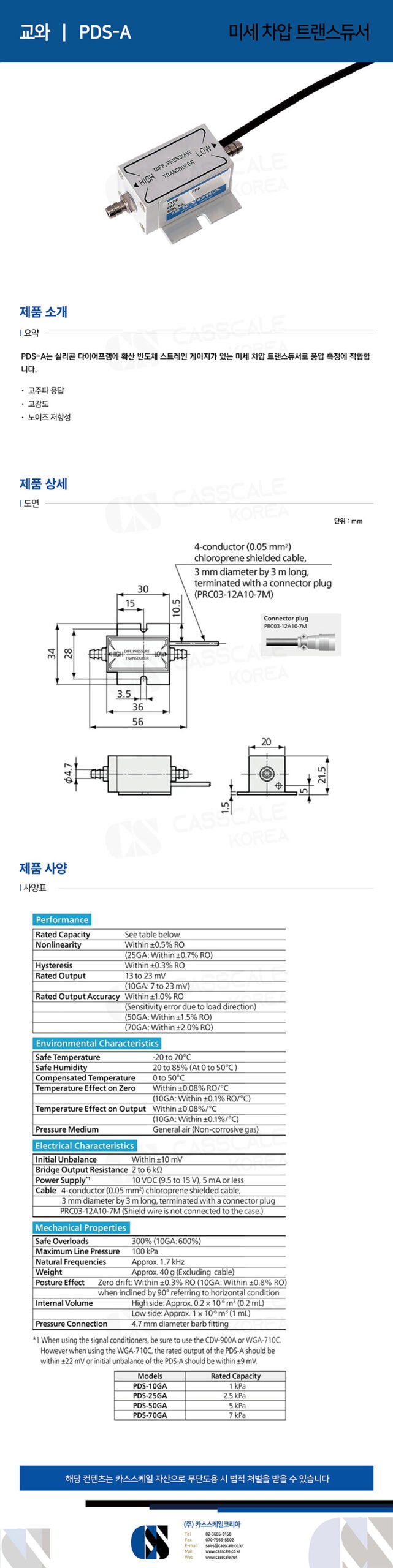 The PDS-A is a micro differential pressure transducer with a diffused semiconductor strain gauge on a silicon diaphragm, suitable for wind pressure measurement.