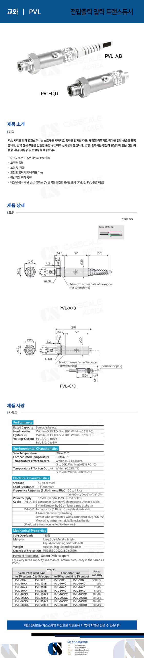 The PVL series pressure transducers detect pressure using a strain gauge and then amplify the minute voltage signal with a built-in amplifier. The pressure sensor section has a simple integrated structure, ensuring high reliability. The amplifier is fully tuned, providing high vibration resistance, environmental durability, and stable performance.