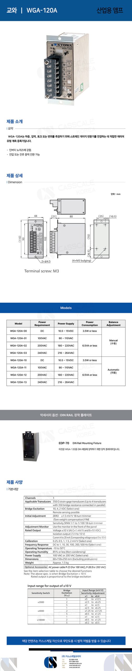 The WGA-120A is a carrier-type measurement amplifier suitable for connecting strain gauge transducers to measure load, pressure, torque, or displacement.