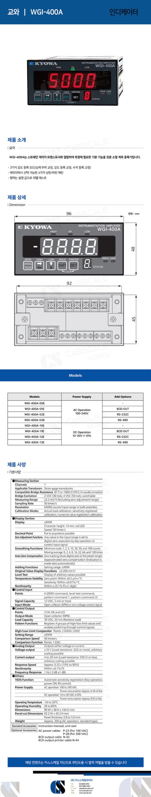 WGI-400A is a compact measurement amplifier with basic functions optimized for use with strain gauge transducers.