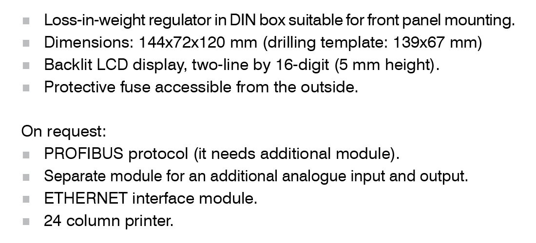 - RS232 and RS485 ports (Ethernet TCP / Profibus DP by converter)