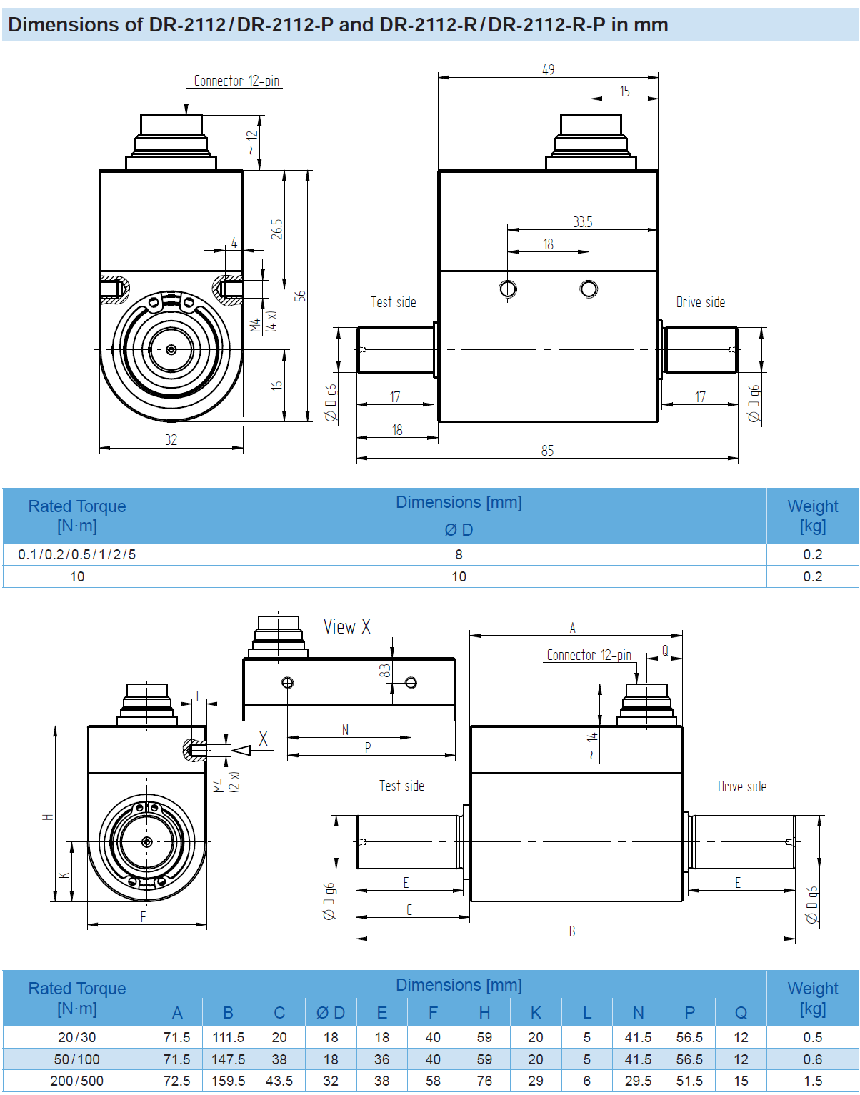 Lorenz / Rotating Torque Sensors DR-2112/DR-2112-P and DR-2112-R/DR-2112-R-P (contactless)