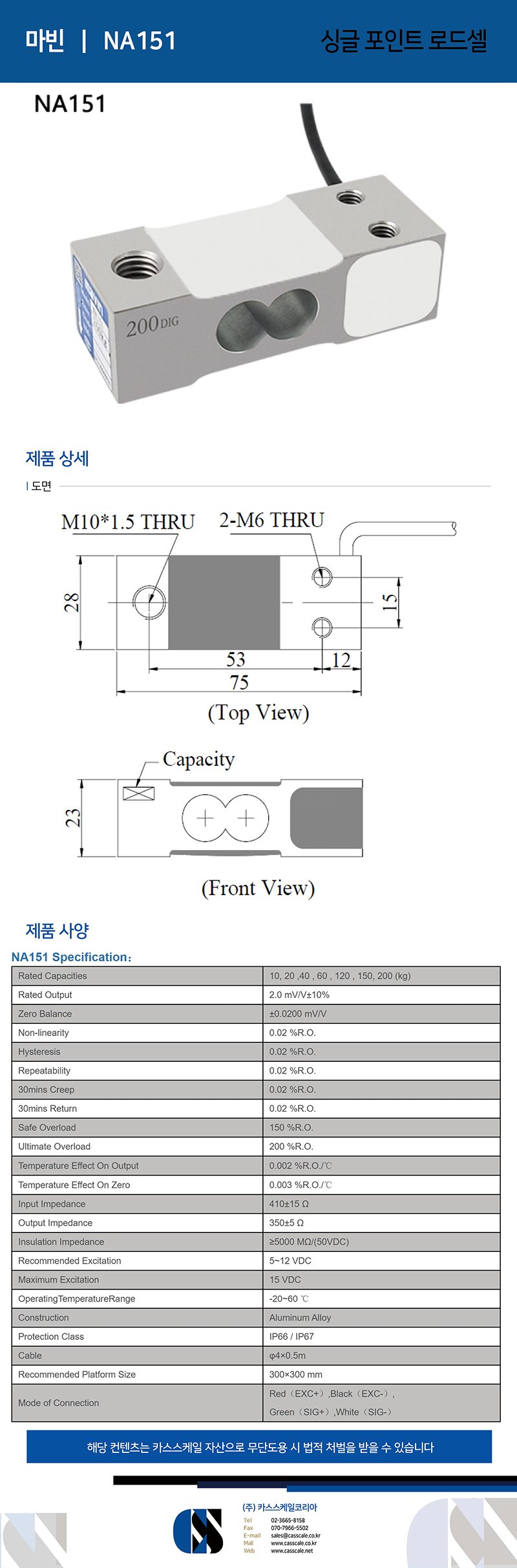 The NA151 is a industrial single point load cell made from aluminum. The low capacity weight sensor is suitable for the instrument to switch from mechanic to electronic.