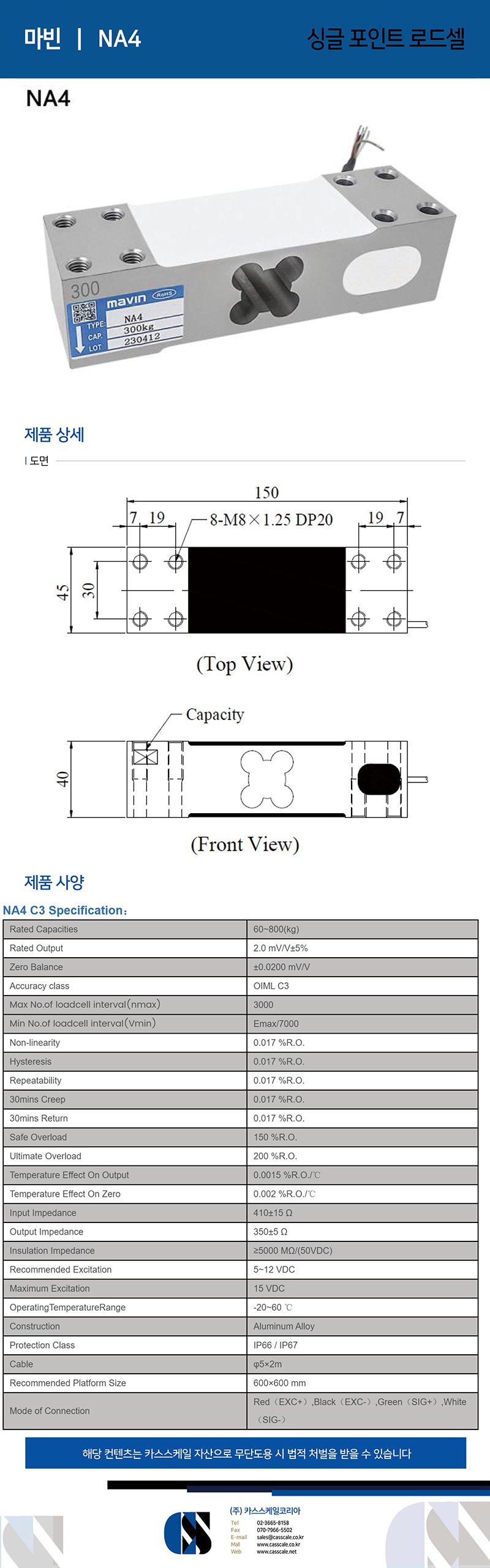 High Precision Load Cell NA4 C3 is environmentally sealed with potting compound to ensure durability. The Aluminum Alloy Sensor is easy to install. Approval: OIML R60 C3; test certificate number: NO.R60-2000-NL1-16.10.