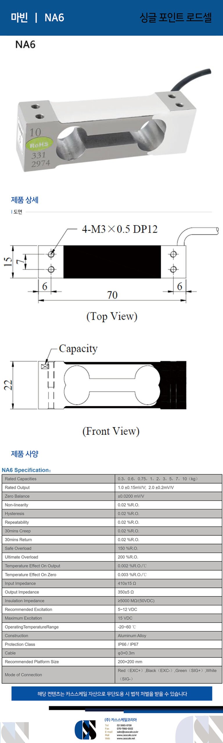 The NA6 is a single point bending beam load cell with aluminum alloy construction. The Low capacity weight sensor delivers highly precise and reliable measuring results even in long-term use.