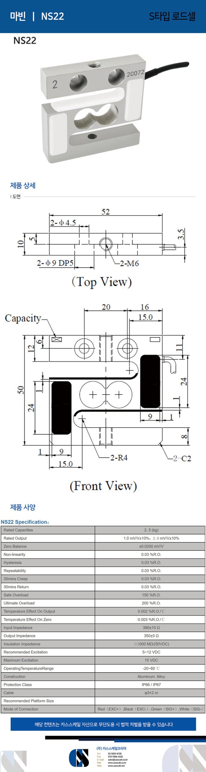 NS22 S type load cell is calibrated to national standards, with high accuracy 0.02% R.O. The strain gauge based load cell is made with aluminum alloy construction for low capacities, while steel alloy for higher capacities