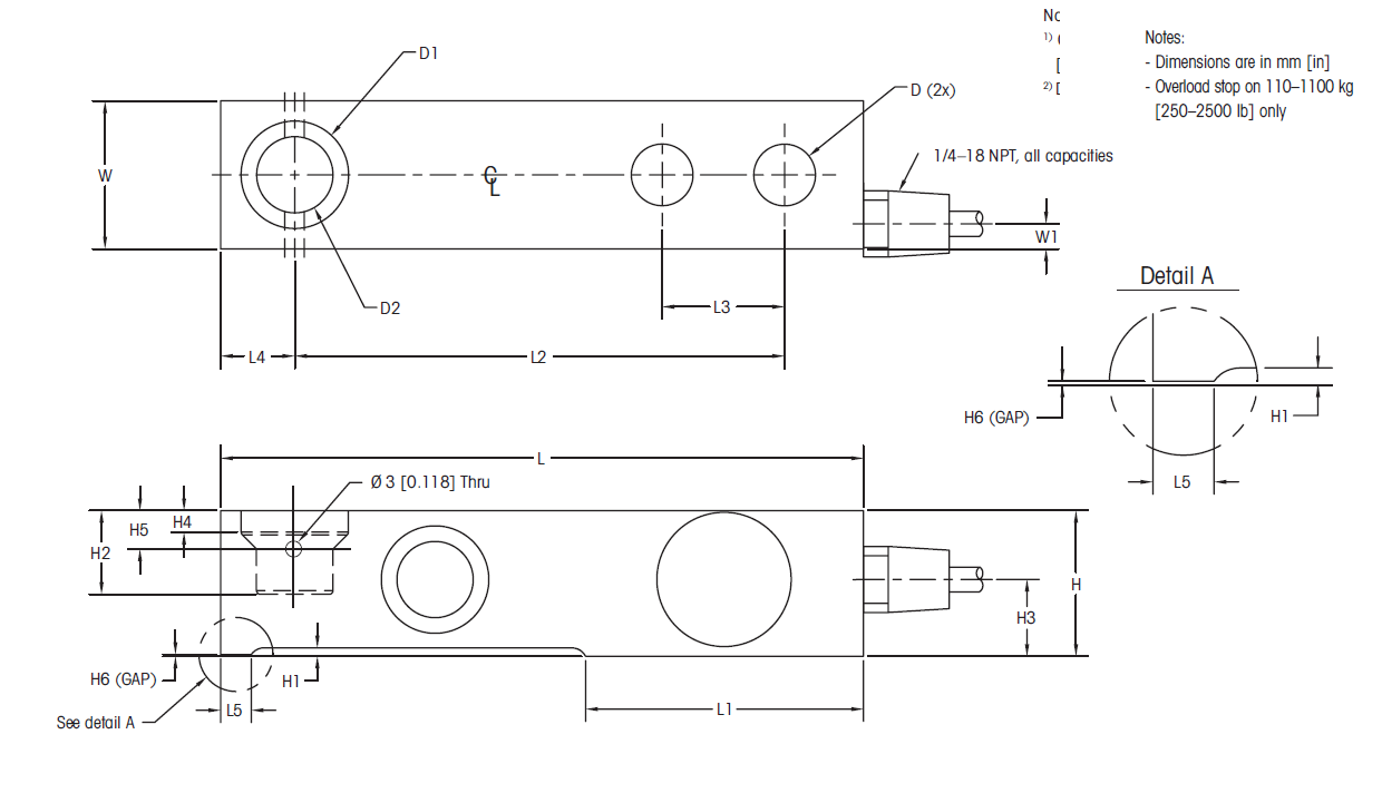 SLB415 Load Cell Dimensional Drawings mm [in]