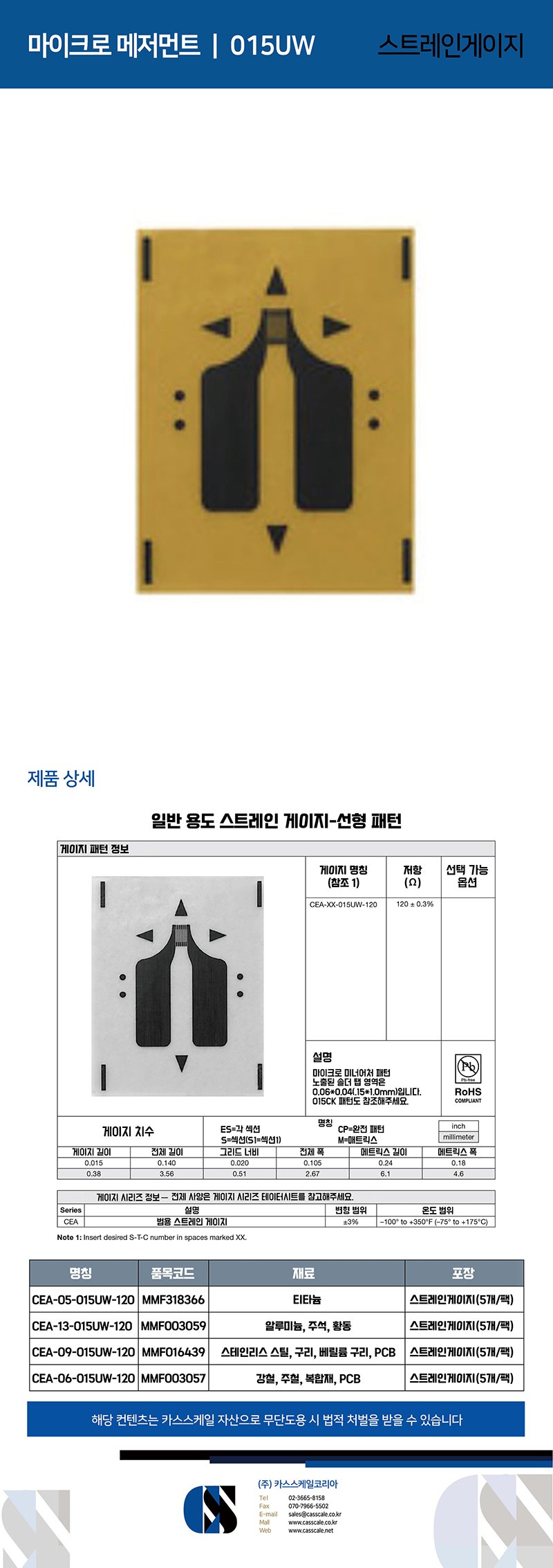MICRO MEASUREMENTS / 015UW / Strain gage