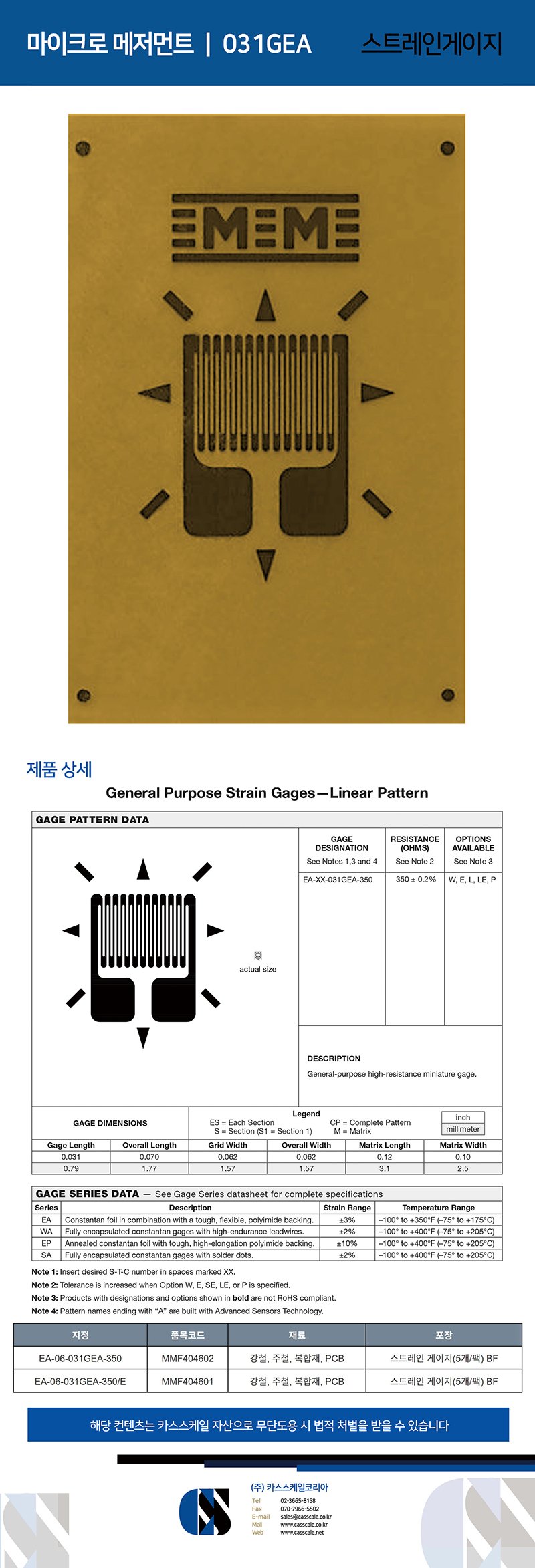 MICRO MEASUREMENTS / 031GEA / Strain gage