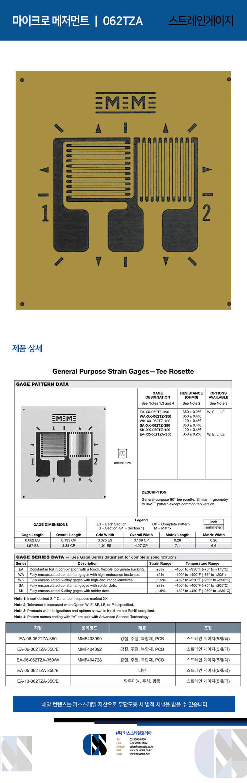 MICRO MEASUREMENTS / 062TZA / Strain gage