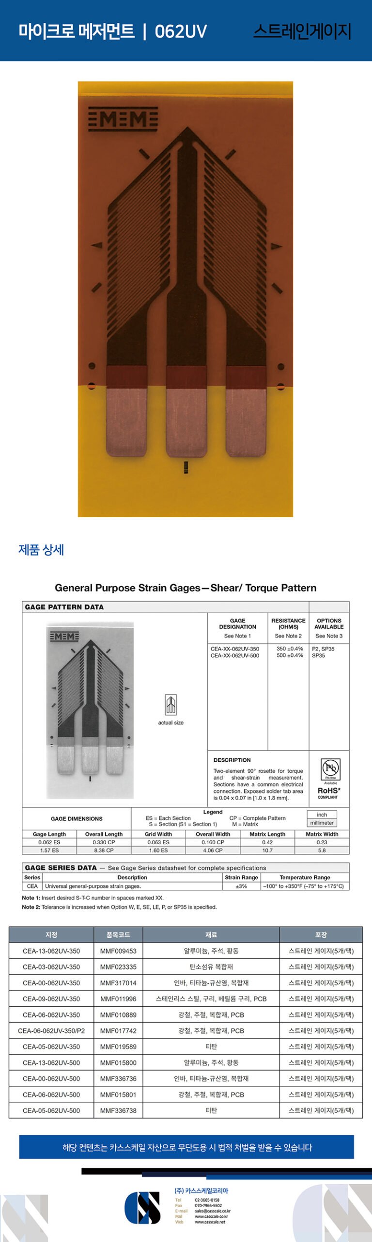 MICRO MEASUREMENTS / 062UV / Strain gage