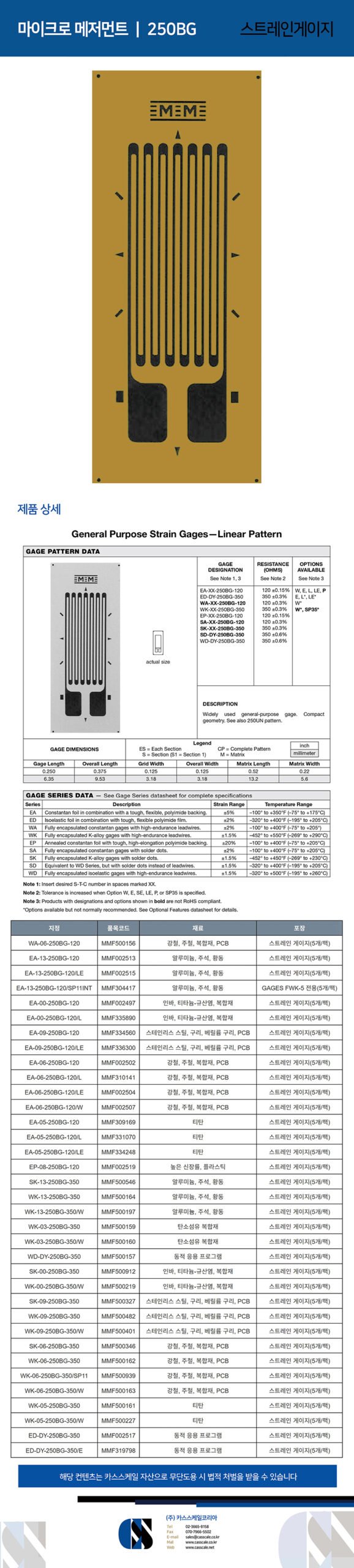 MICRO MEASUREMENTS / 250BG / Strain gage