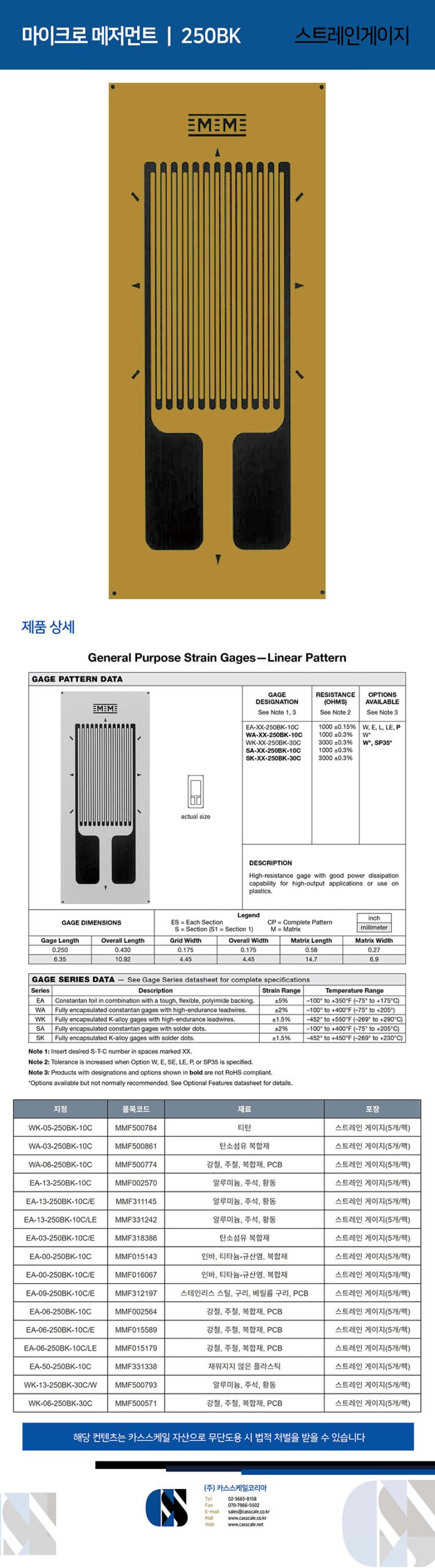 MICRO MEASUREMENTS / 250BK / Strain gage