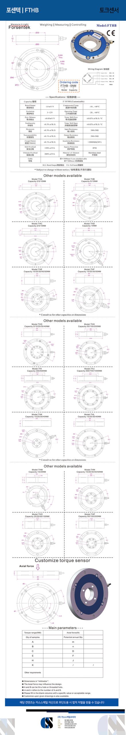 Thin joint torque sensor FTHB is characterized by its low profile and disk-shaped design,which makes it possible to integrate the torque transducer into robot joints or drives without taking up a significant amount of installation space. Hollow torque transducer FTHB is able to measure torque in both clockwise and anti-clockwise direction. Besides the listed dimensions and capacities, Forsentek is also willing to provide custom design service according to clients’ specific requirements.