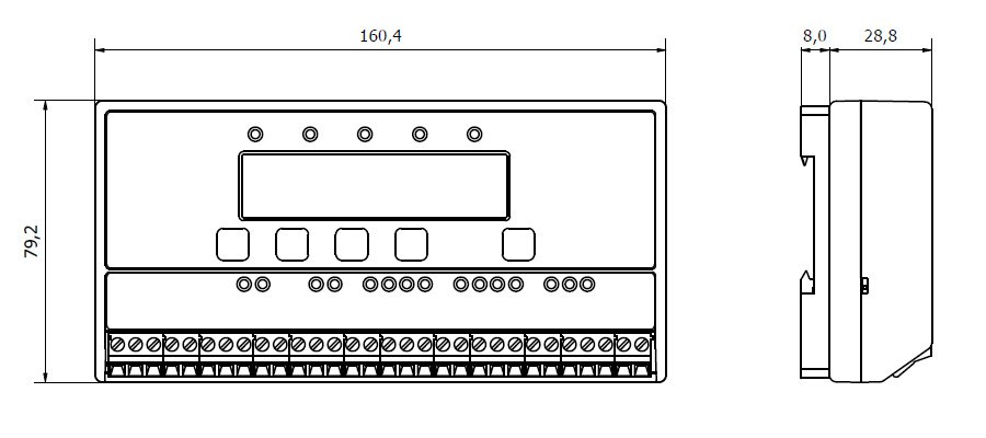 - Small size, and the possibility of PANEL or DIN-RAIL mounting.