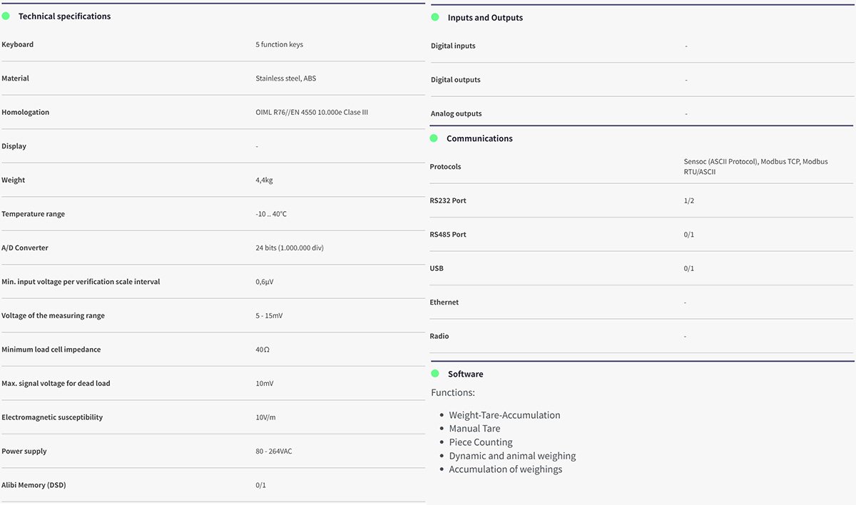 • Certification: OIML R76 / EN 45501 (Class III, 10,000 divisions)