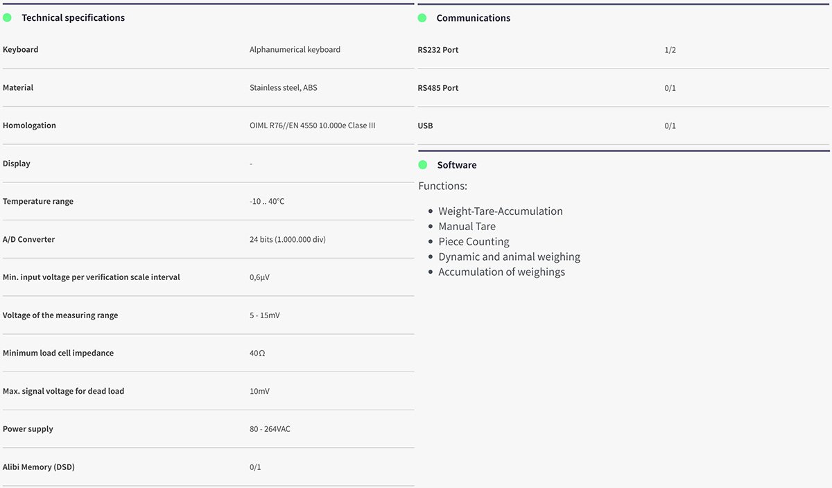 The SCA10 is a weight Indicator with alphanumerical keyboard and 3 numeric display fields approved according to OIML R76 and EN 45501 (Class III – 10000 divisions)