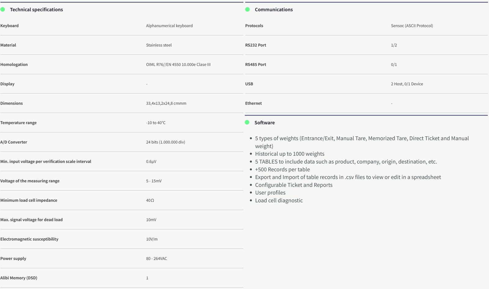 • Certification: OIML R76 / EN 45501 (Class III, 10,000 divisions)