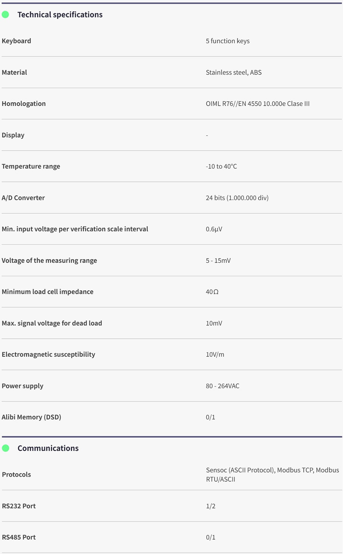 - Adapted communication protocols for the connection to commercial indicators of different manufacturers