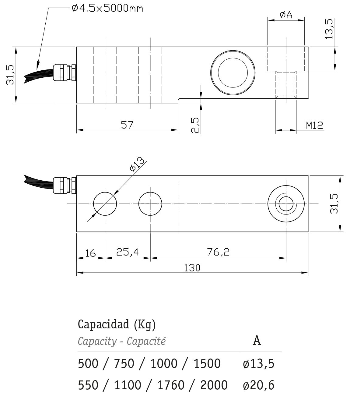 Divisions : Up to 4000 divisions OIML-R60