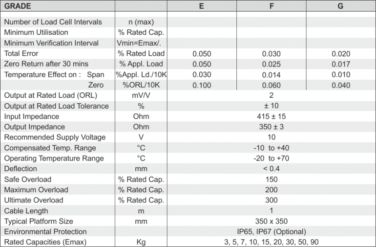 Capacities: 3, 5, 7, 10, 15, 20, 30, 50, 90 kg
