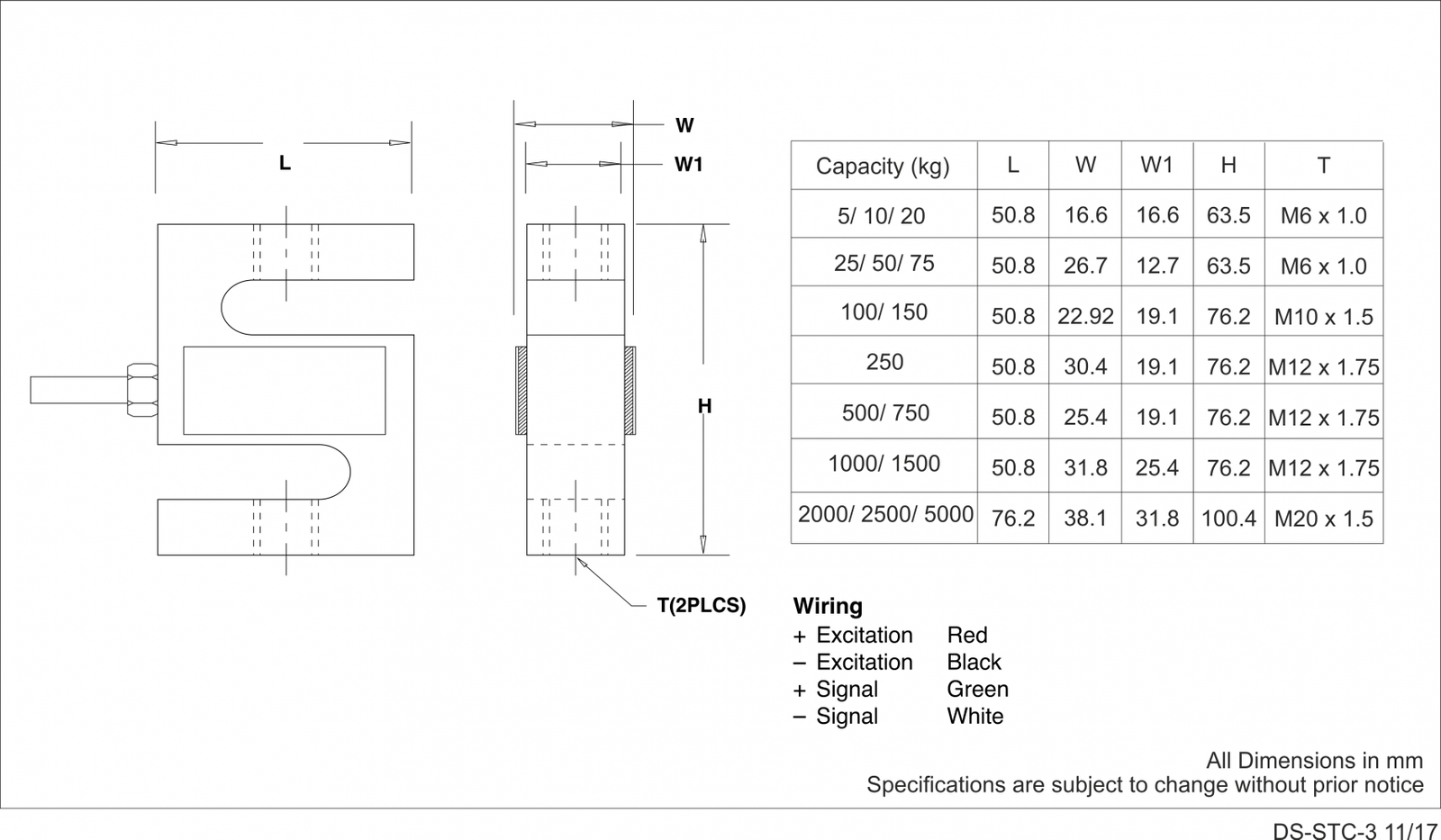 The model Load Cell STC belongs to the S type group of load cells. Transducers of this type are symmetrical and have threaded holes top and bottom to introduce the load which can either be in tension or compression.