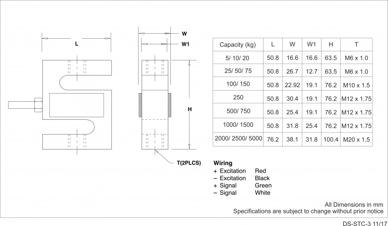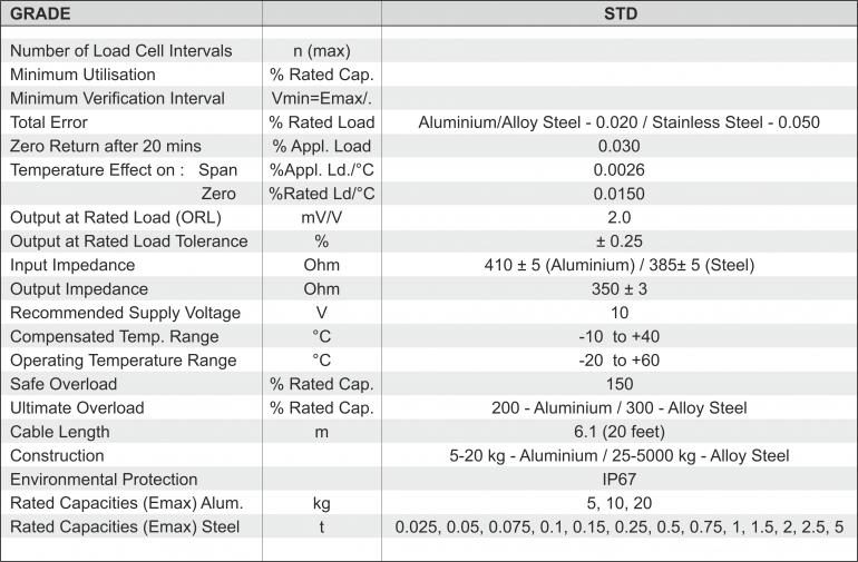 Capacities: 5, 10, 20, 25, 50, 75, 100, 150, 250, 500, 750, 1000, 1500, 2000, 2500, 5000 kg
