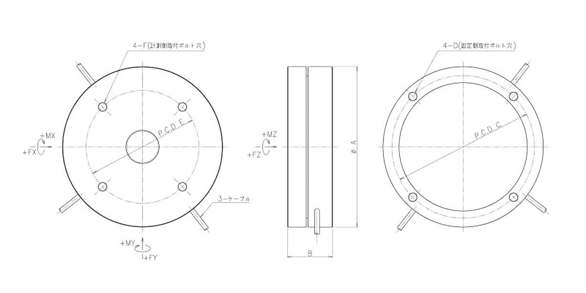 | 형식명 | 역계 분력(N) | 모멘트계 분력(N・m) | 치수(mm) | 정격 출력(mV/V) | ||||||||||||||