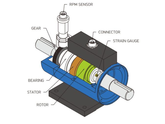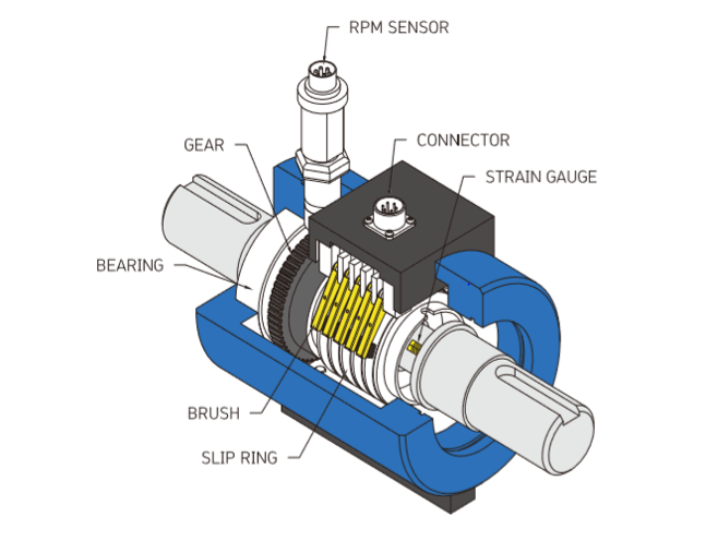▶ 토크 및 각도 위치 측정, 샤프트가 회전시 스트레인게이지가