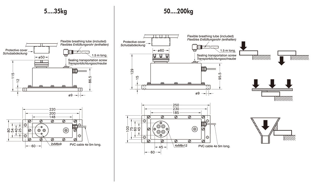 and 600 x 600 mm (50…200 kg)