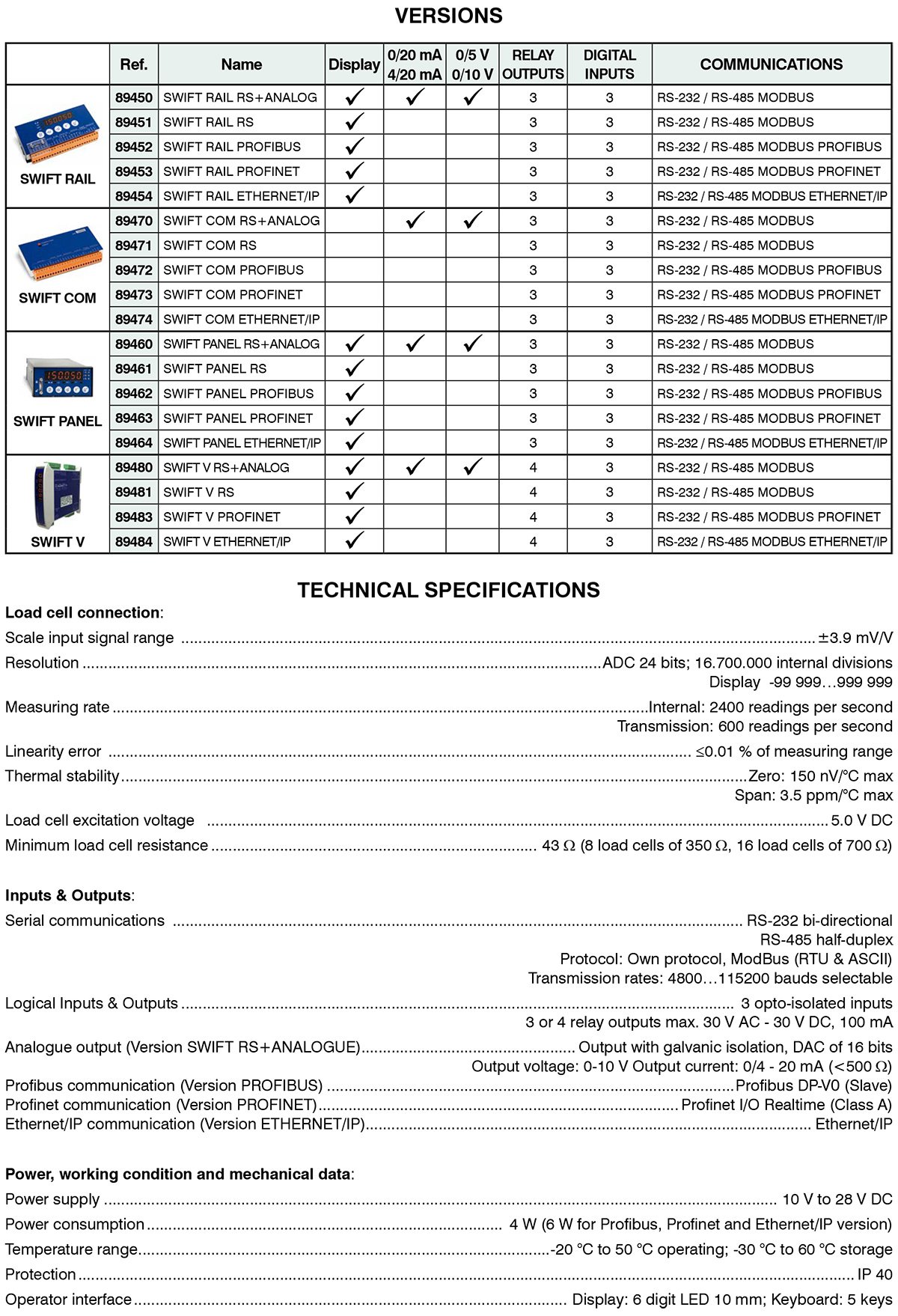 SWIFT RAIL, SWIFT COM, SWIFT PANEL, SWIFT V