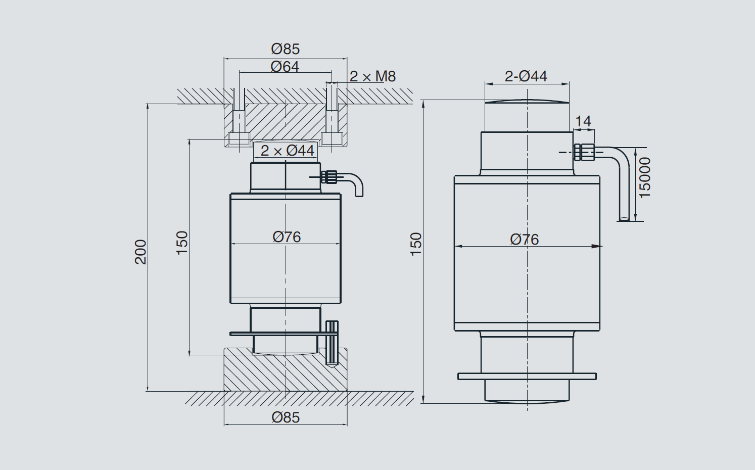The measuring force must be introduced through the centre and free of transverse force. When assembling the force transducer, care should be taken that the support surface is flat.