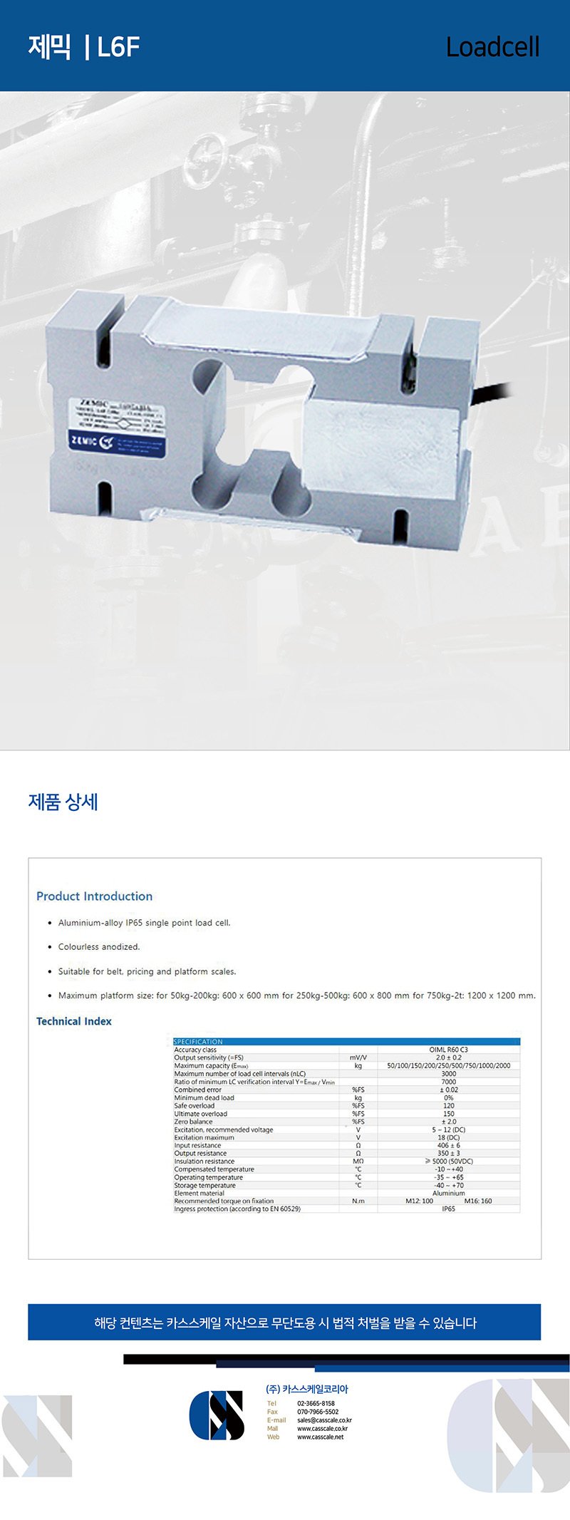 L6F Load Cells are suitable for belt, pricing and platform scales.