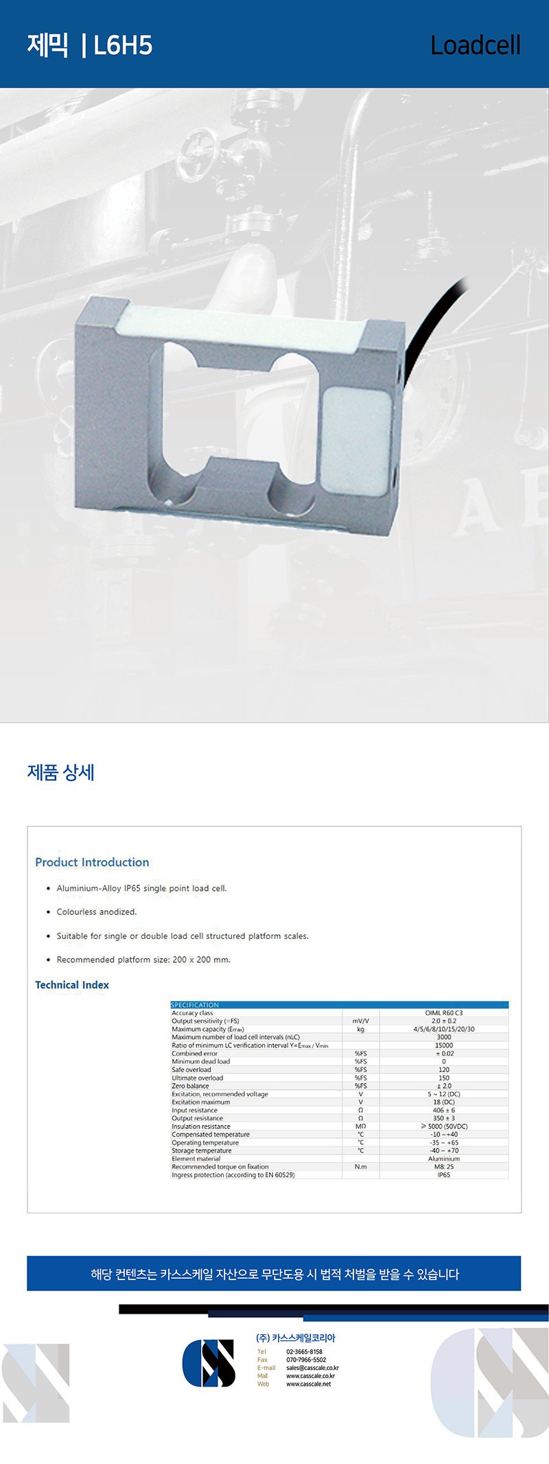 L6H5 Load Cells are suitable for single or double load cell structured platform scales.