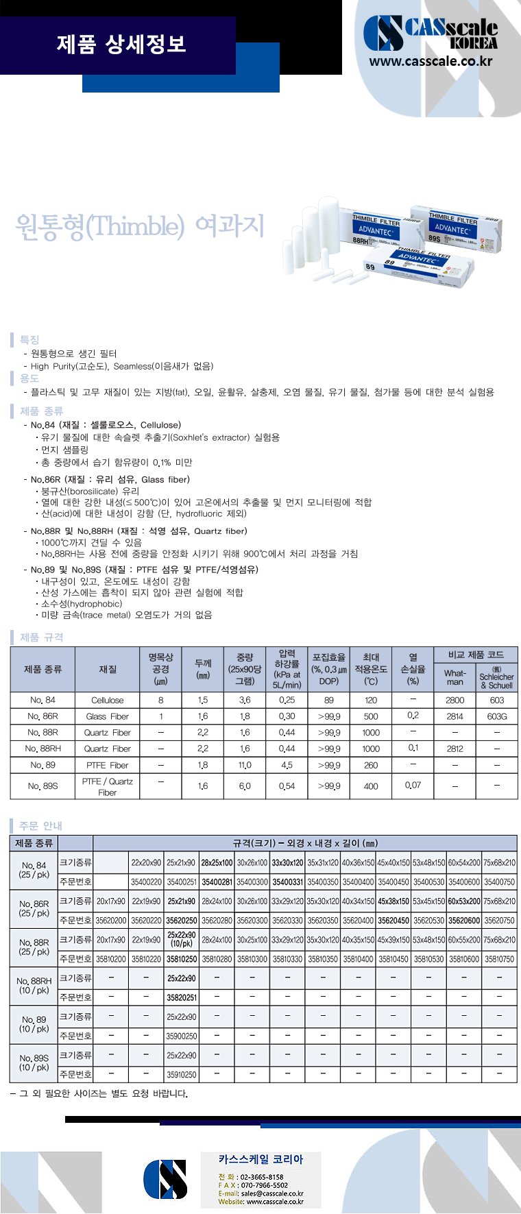 No.84 (Cellulose) / No.86R (Glass Fiber) / No.88R (Quartz Fiber) / No.88RH (Quartz Fiber)