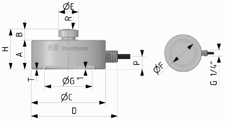 PVC 105°C shielded cable, Ø5.2mm with 4 tinned Ø0.35mm2 conductors. Shield connected to the body of the load cell.